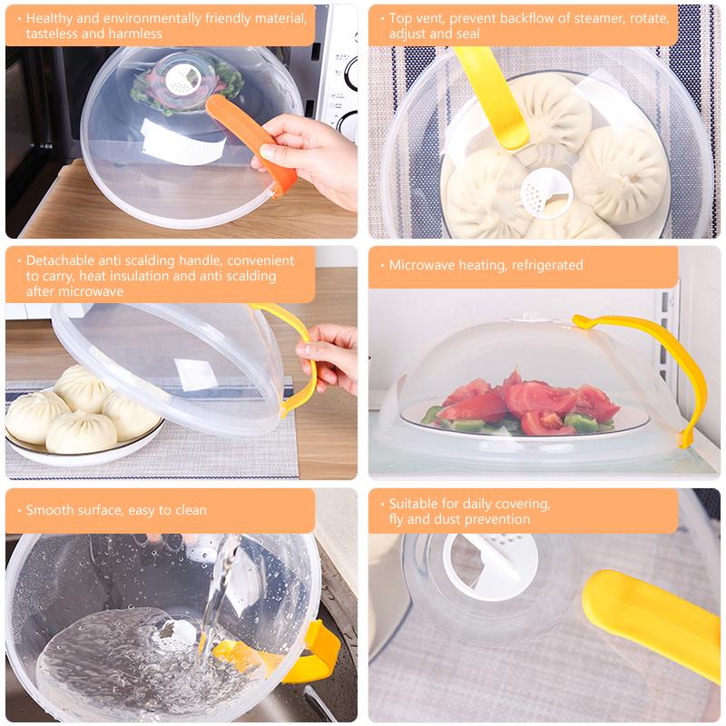 The plastic microwave cover is provided with a steam outlet, which can effectively release the steam, heat the food evenly, and prevent the food from cracking or splashing oil during the microwave heating process. It prevents food from splashing, and the built-in steam outlet helps evenly heat food. Stay in the microwave and ready to use.