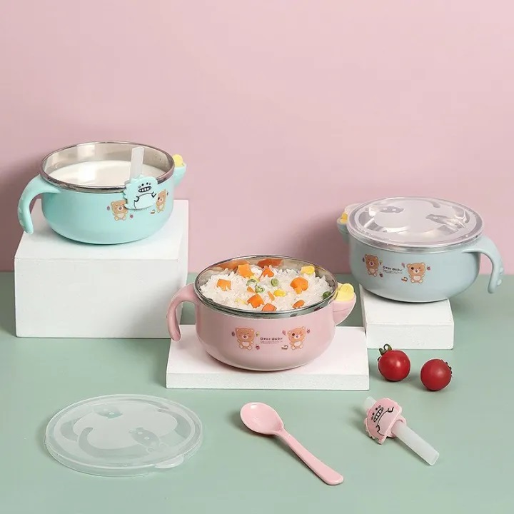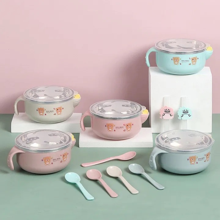 Colour: Multiple, Colours will be sent as per availability. Modern and cute design Porridge Bowl Baby Dish. Capacity: 300ml, Color sent as per availability. Stainless steel interior. LEAKPROOF AND AIR-TIGHT PROPERTIES - Designed to keep food, no spills. Material: PP+ Stainless steel, Package Content:1 stainless steel bowl with handles, Special Feature: Dishwasher Freezer and Microwave safe.
