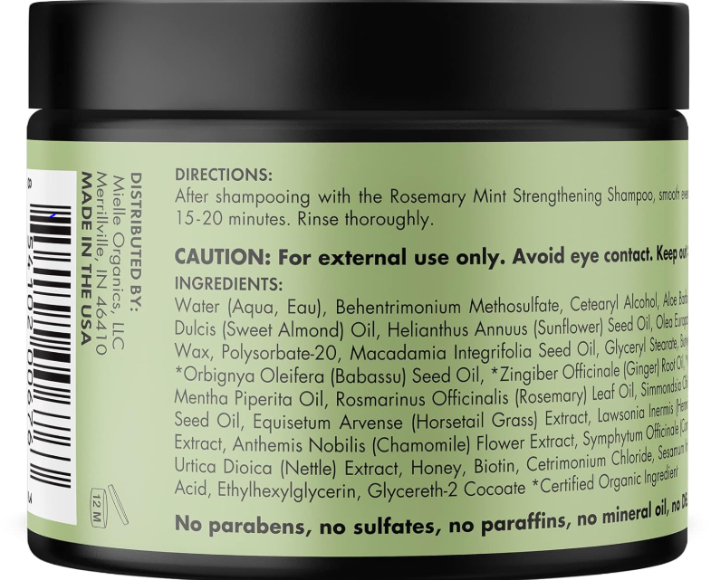Does your hair deserve a little extra love? Add Mielle’s Rosemary Mint Strengthening Hair Masque to your routine! This nutrient-rich formula is made to offer deep moisture and healthy strength. With natural and organic ingredients such as rosemary, sesame seed oil, honey, and coconut oil, this hair masque offers the hydration and nourishment your hair has been craving. Massage into your hair after using our rosemary mint hair strengthening shampoo, let sit for 15 to 20 minutes, and then rinse.