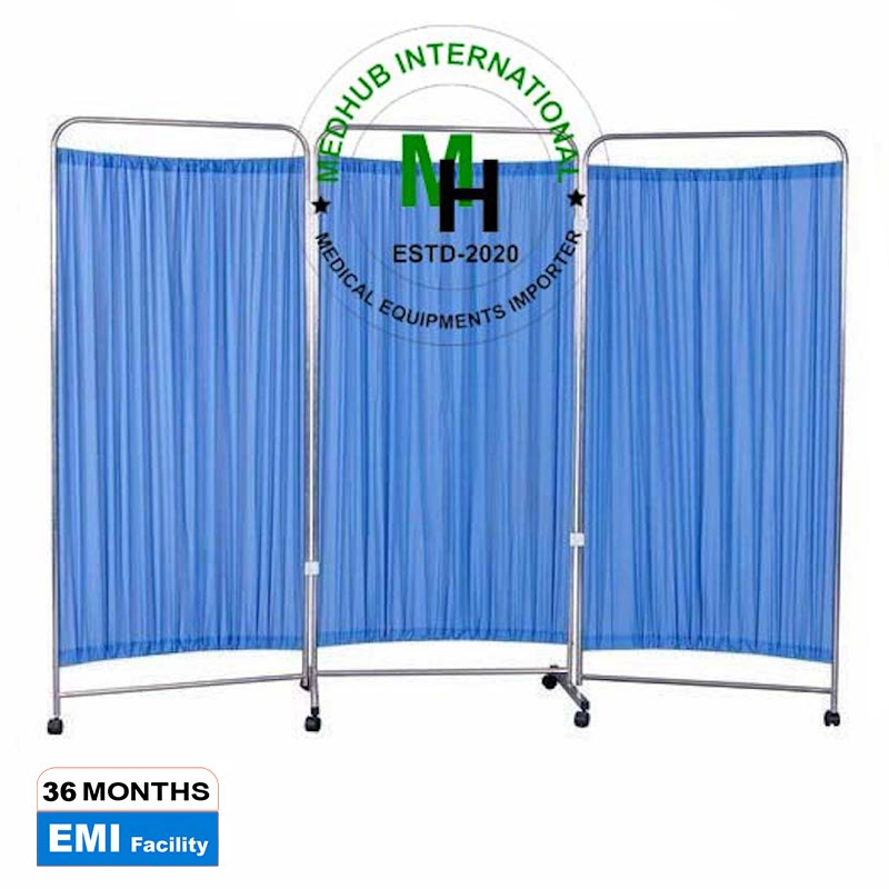 Mild Steel 3 Part Bed Side Partition for Hospital (Screen Stand) - Blue