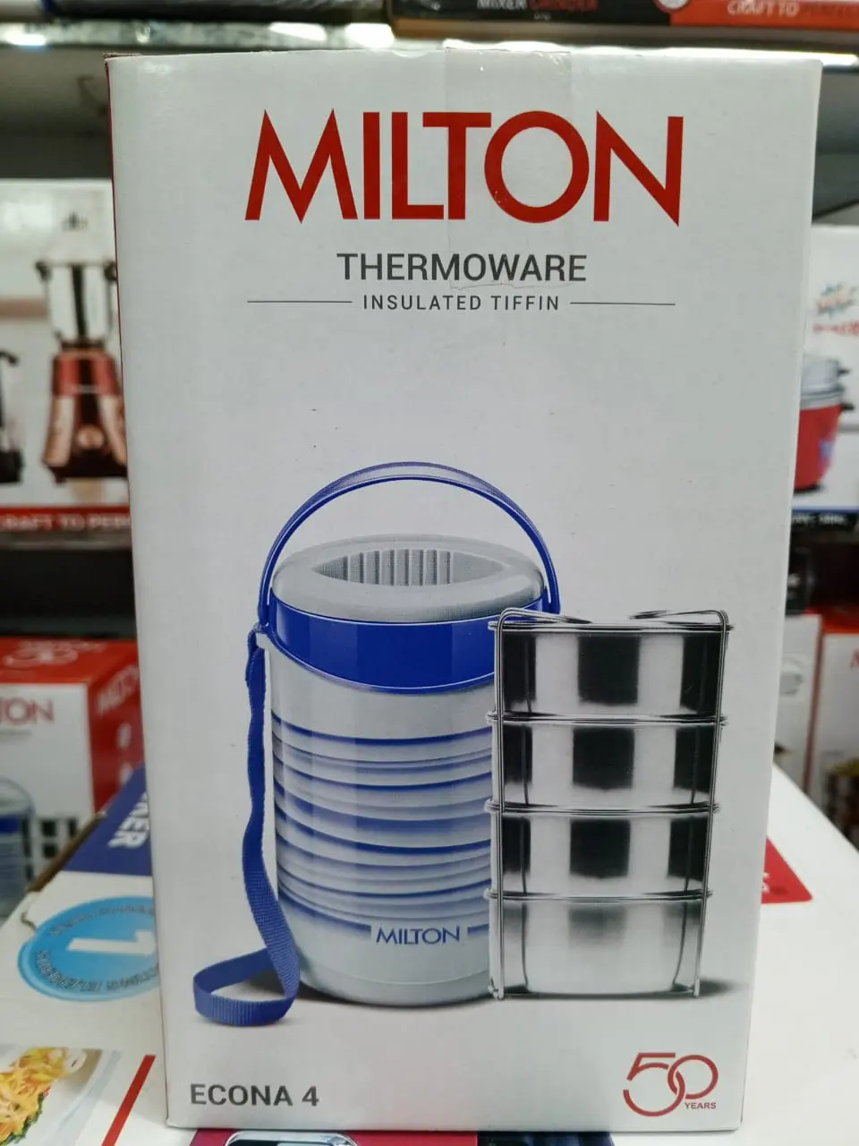 The Milton New Econa 4-Layer Tiffin Box is a premium insulated lunch carrier designed to keep your meals fresh and warm for hours. With its four stainless steel containers and strong outer casing, it allows you to pack a complete meal—rice, curry, salad, dessert—all in one convenient, easy-to-carry set.