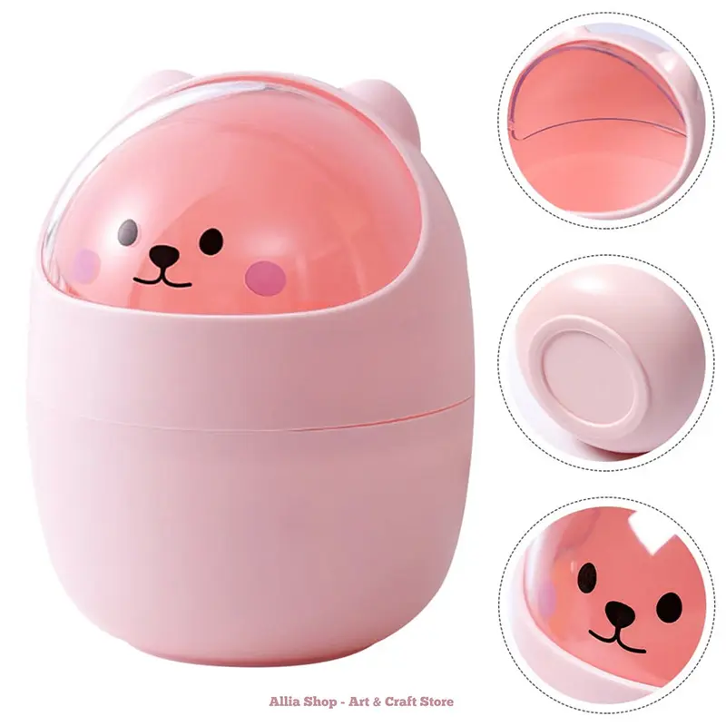 Its sleek, modern look adds a decorative touch while serving a practical purpose. The easy-open lid makes tossing in paper scraps, snack wrappers, tissues, and other tiny trash items effortless. Made from durable and lightweight materials, it’s easy to clean and carry, making it perfect for offices, study rooms, dormitories, or makeup stations.