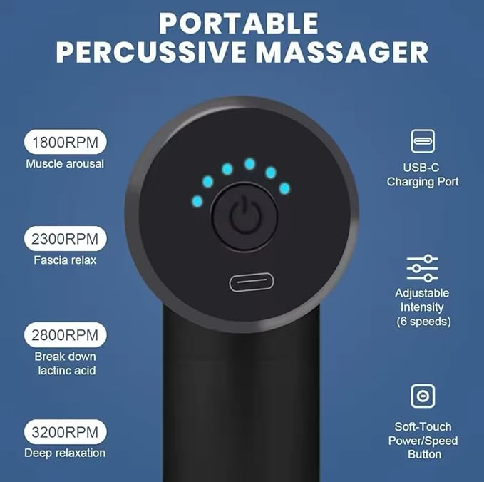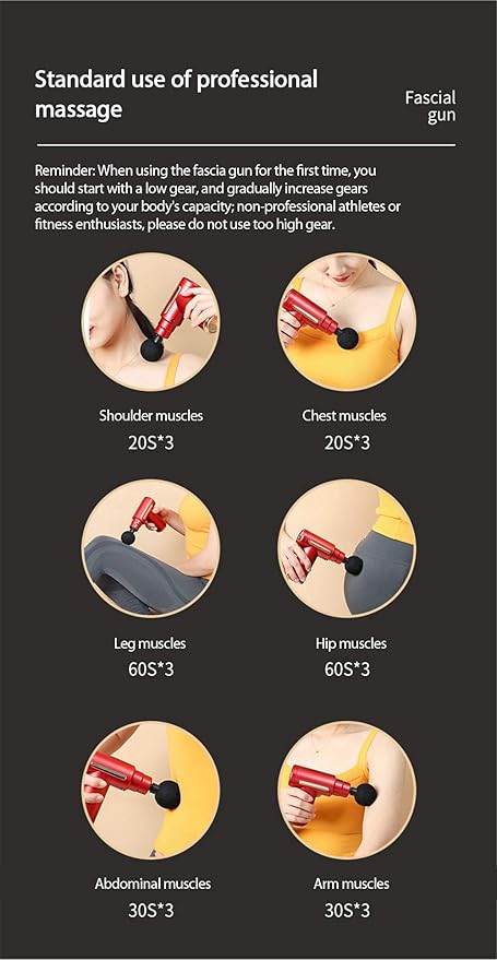 Rechargeable Mini Gun Massager comes with a battery capacity of 2500mAh that can give working time about 60-90 minutes and has maximum motor speed of 3600rpm with 30 watt rated power. Also, it has some amazing features and functions such as 7.4V rated voltage, 100-240V adapter input, 8.4V 1A adapter output, about 3 hours charging time, and 6 adjustable levels vibration intensity for better using performance.