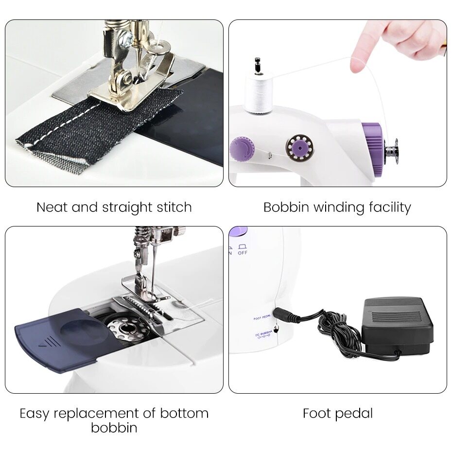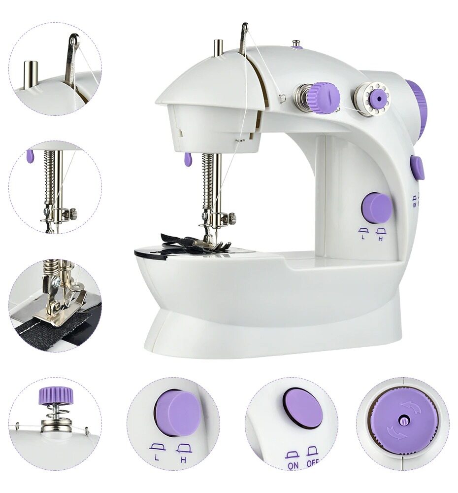 - Mini desktop used sewing machine offers double thread sewing, neat and straight stitch.