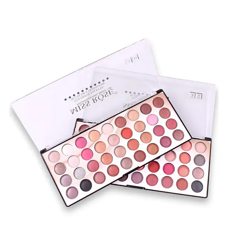 Miss Rose 36 Color Waterproof Eyeshadow PaletteBenefit: Long-lasting,Easy to Wear,NaturalOther NET WT: as pictureWaterproof / Water-Resistant: YesFinish: Shimmer,Matte,Metallic Single color/multi-color: Above eight colorsModel Number: MZ89760Quantity: 1 set Ingredient: mixSize: Full SizeCountry/Region of Manufacture: ChinaType: Eye Shadow Color: 36Beautiful color combination for Professional Eye Makeup Description 100% Original Miss Rose Eye-shadow palette 36 colors. Beautiful color combination for Professional Eye Makeup. Simmer & Matte mixed.