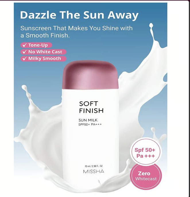 MISSHA's All Around Safe Block Soft Finish Sun Milk offers robust sun protection with a lightweight, non-greasy formula. Infused with a blend of natural extracts and advanced UV filters, this sunscreen provides broad-spectrum defense against harmful UVA and UVB rays while delivering a soft, matte finish. Its unique double-layer UV protection system ensures long-lasting coverage, making it ideal for daily use and outdoor activities.