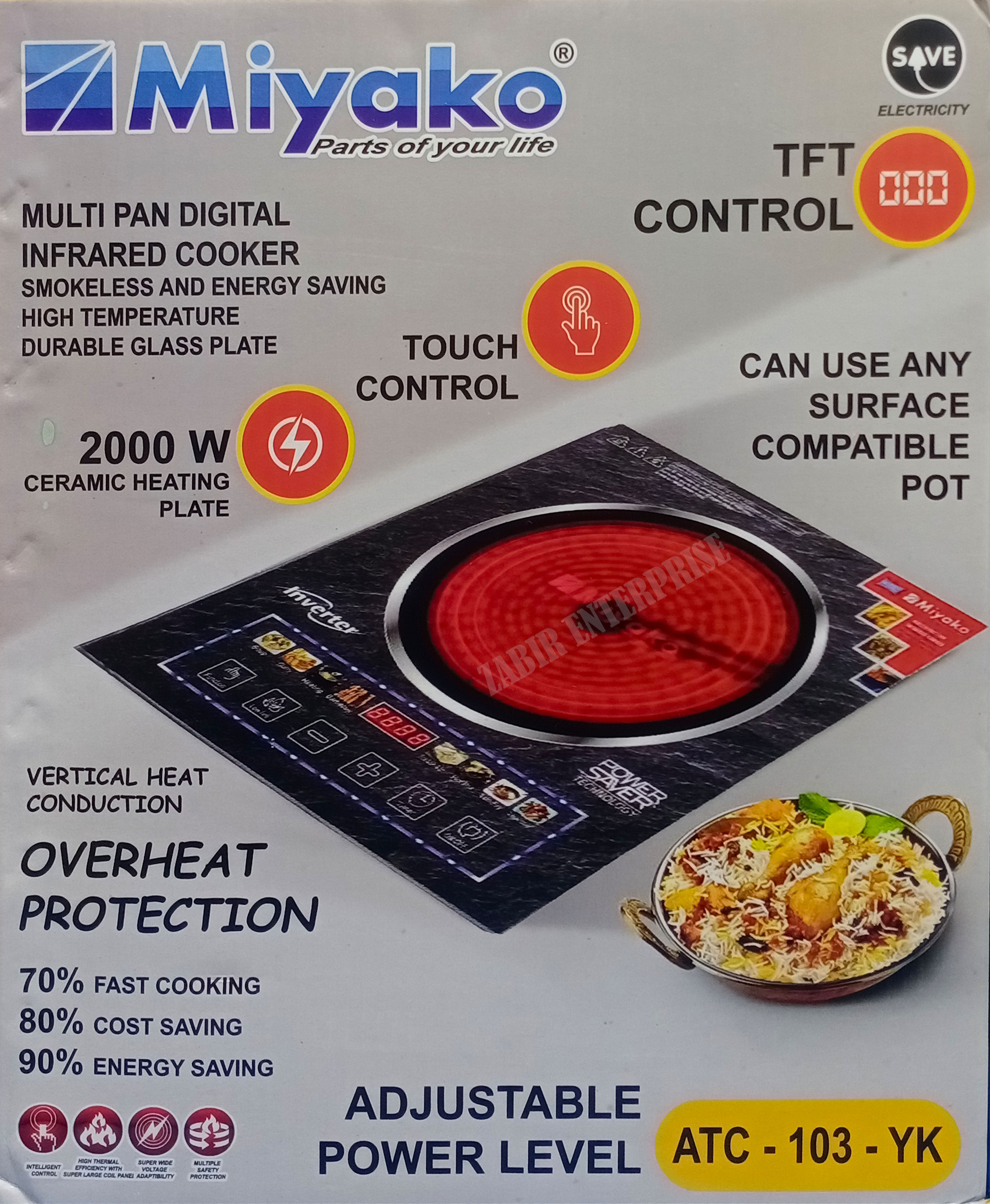 Miyako 2000 Watt Infrared cooker ATC - 103 – YK Multi Pan Digital Infrared Cooker Smokeless And Energy Saving High Temperature Durable Glass Plate