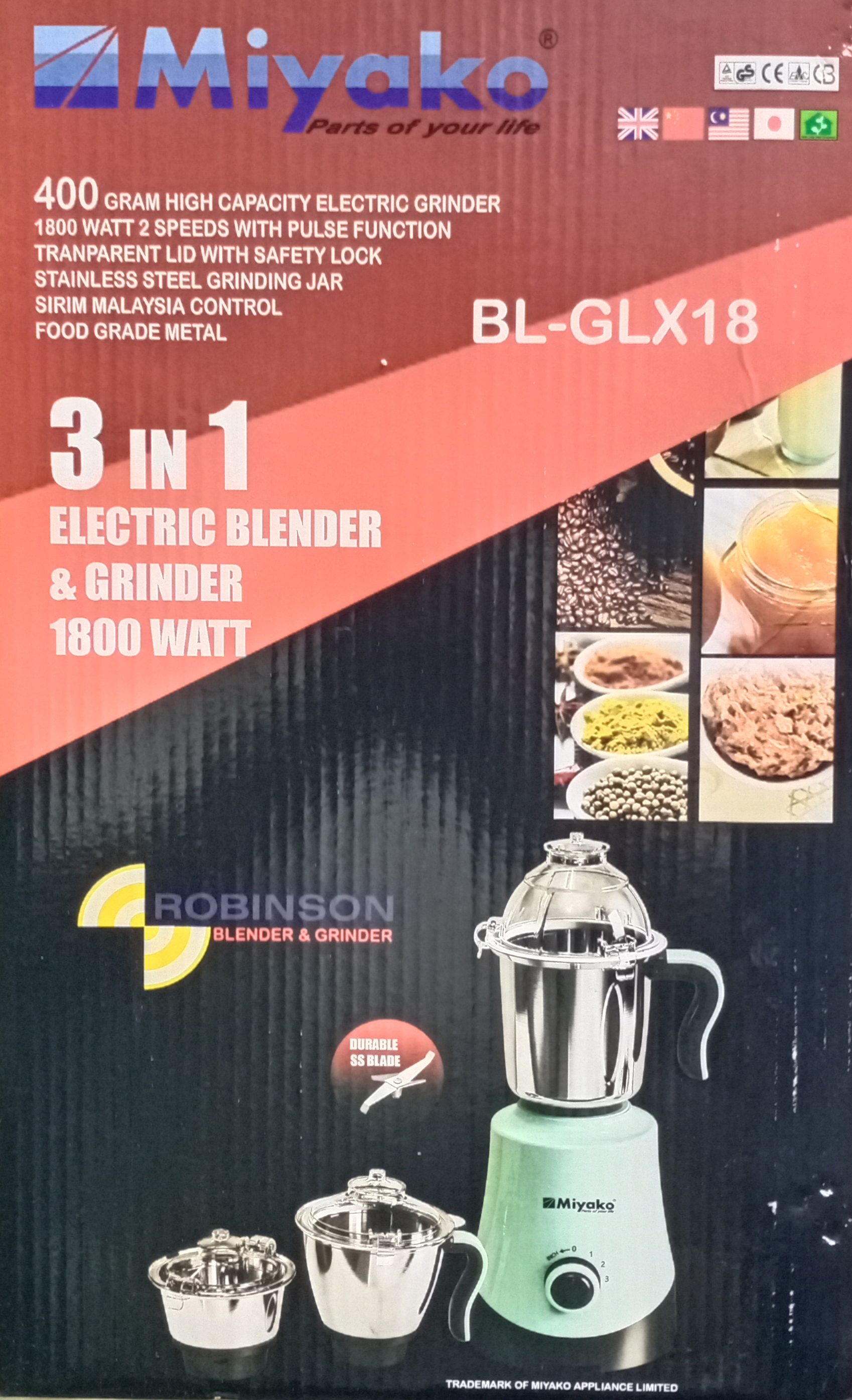 Miyako BL-GLX18 Robinson 3-in-1 Blender & Mixer Grinder – Powerful 1800W Kitchen Companion