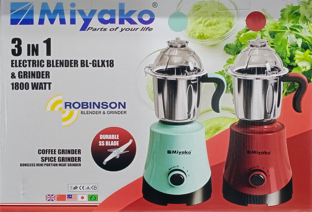 The Miyako BL-GLX18 Robinson 3-in-1 Blender & Mixer Grinder is a reliable and powerful solution for modern kitchens, offering convenience, durability, and multifunction performance in one compact appliance.