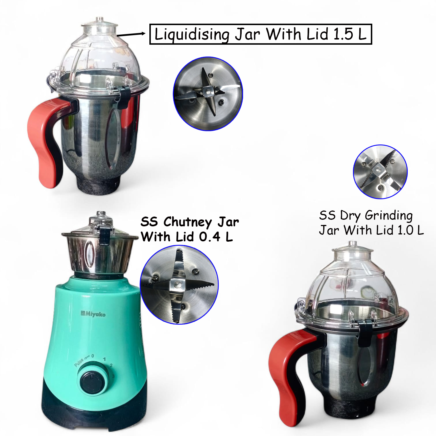 The appliance features high-quality stainless steel blades that ensure efficient grinding and blending while maintaining durability for long-term use. It also comes with three stainless steel jars in different sizes, allowing you to perform various kitchen tasks conveniently.