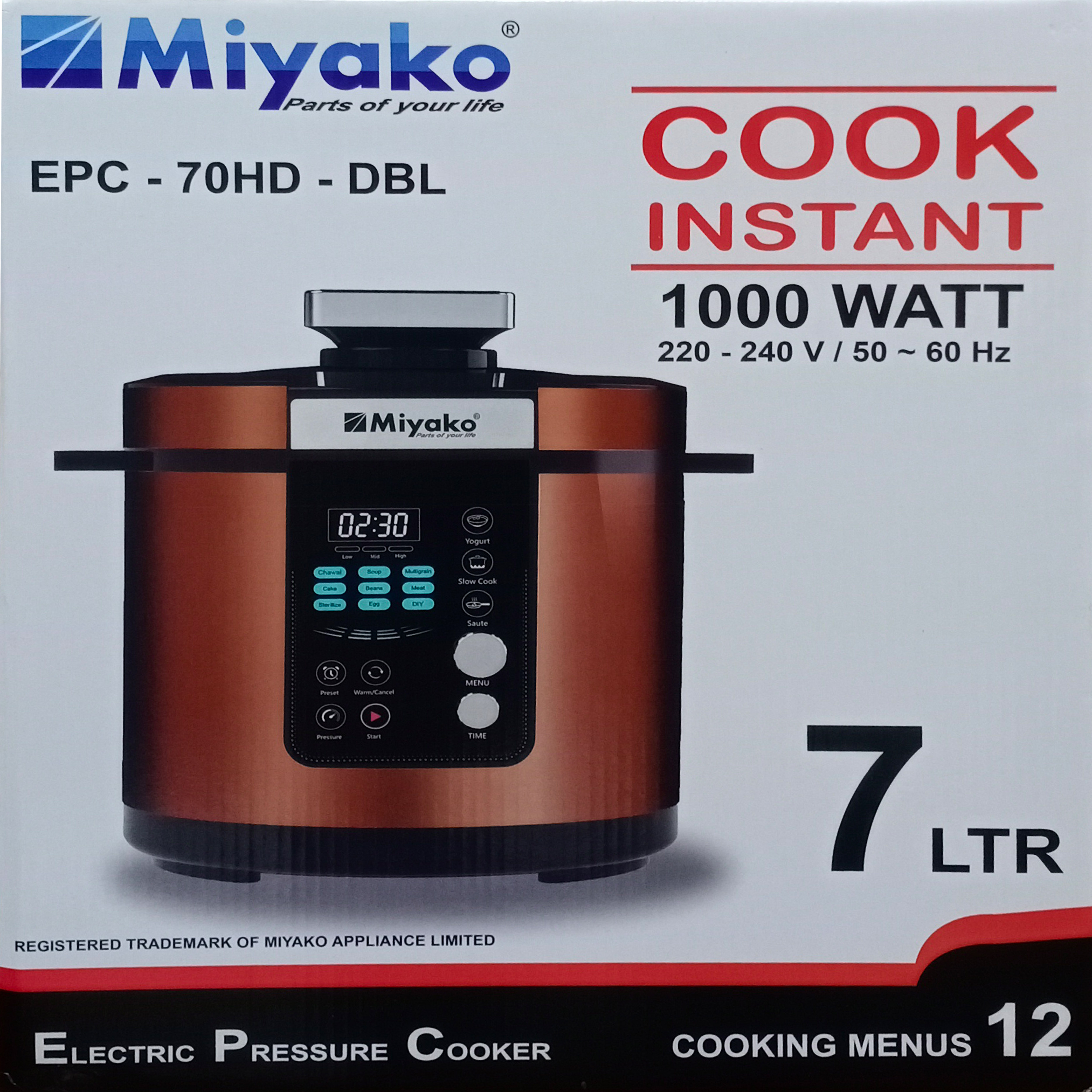 Miyako EPC - 70HD - DBL Double pot Electric Pressure Cooker- 7Liters COOK INSTANT