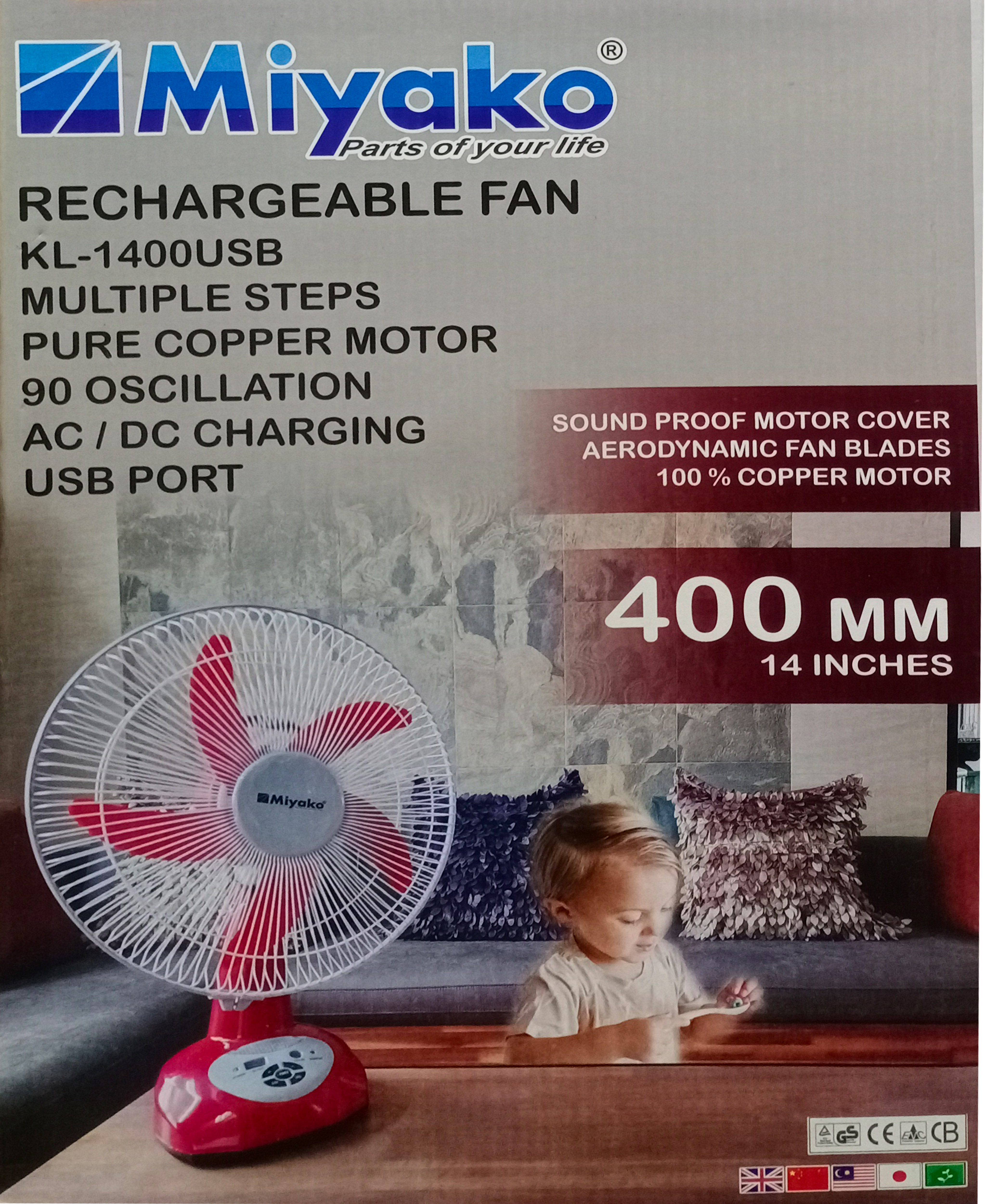 🛒 Order the Miyako KL-1400USB Rechargeable Fan today and enjoy uninterrupted cooling comfort!
