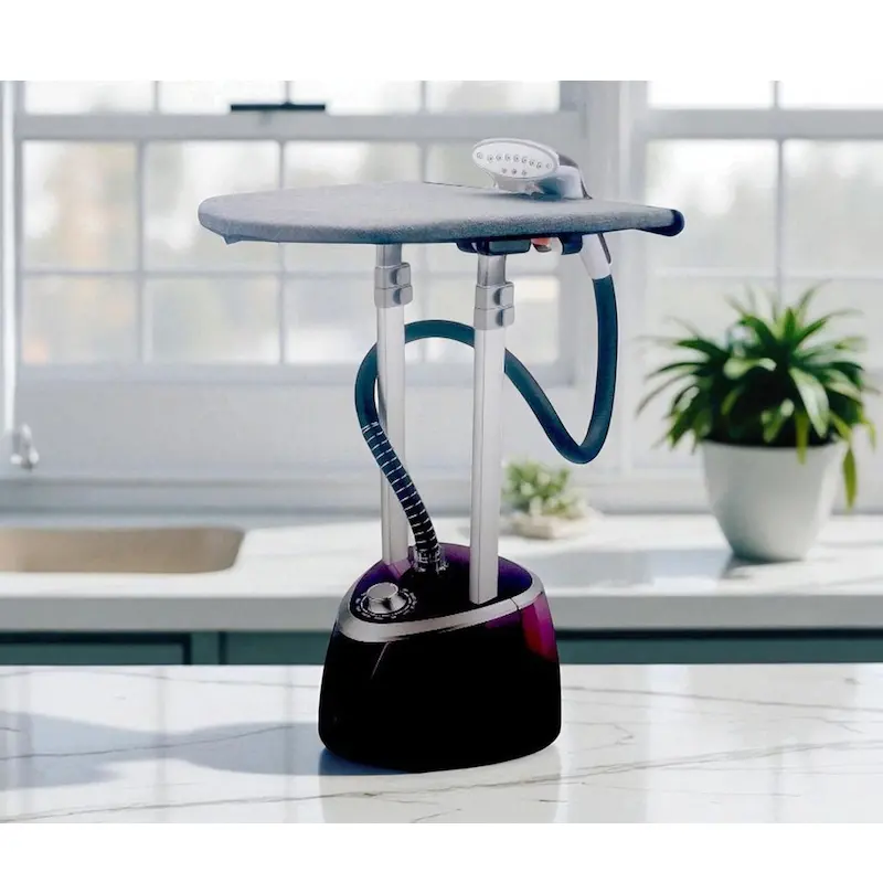 ⑥-Garment hanger with clips: Securely holds garments in place while steaming.