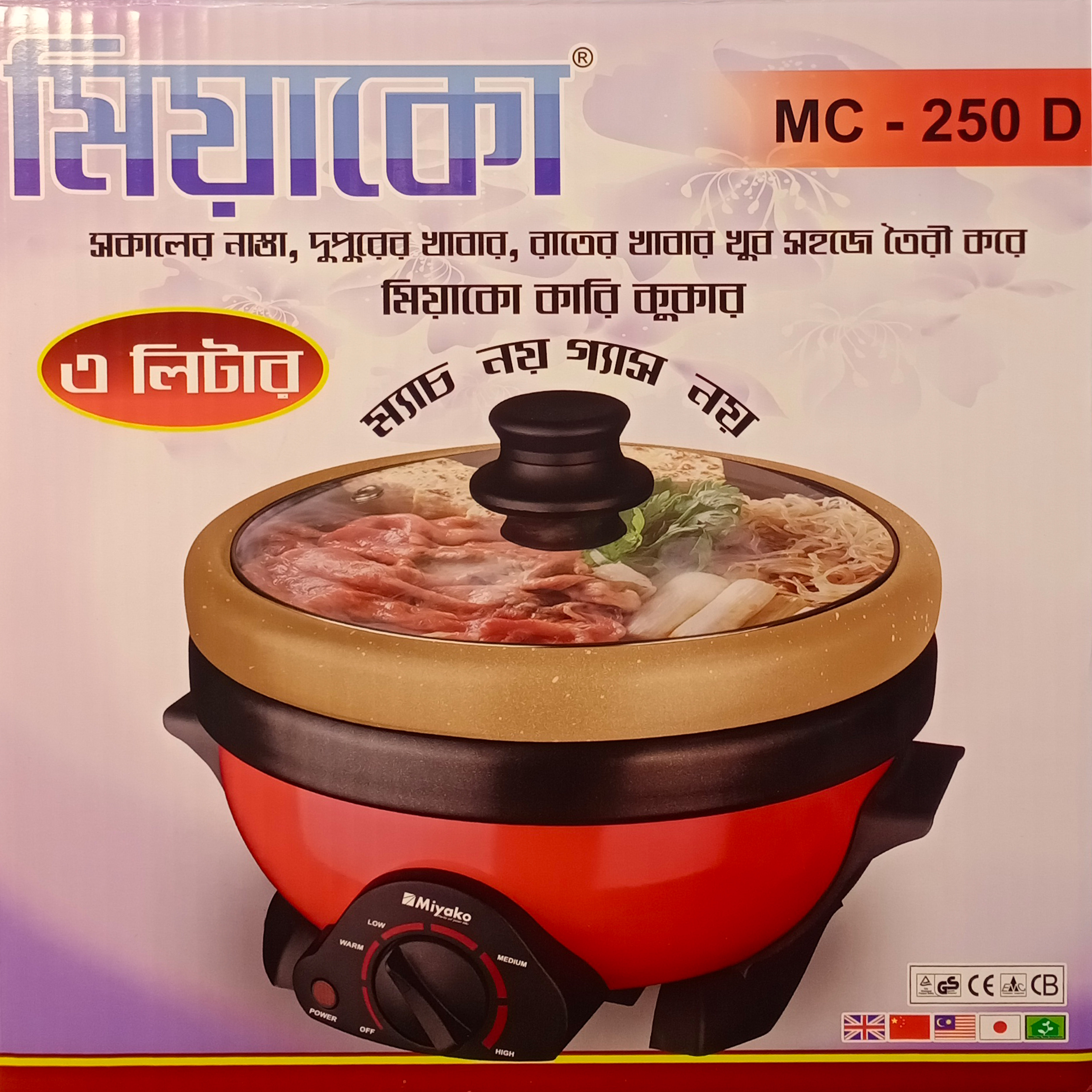Miyako MC-250D 3L Electric Curry Cooker | 1000 Watt Double Pot | Non-Stick & Glass Lid