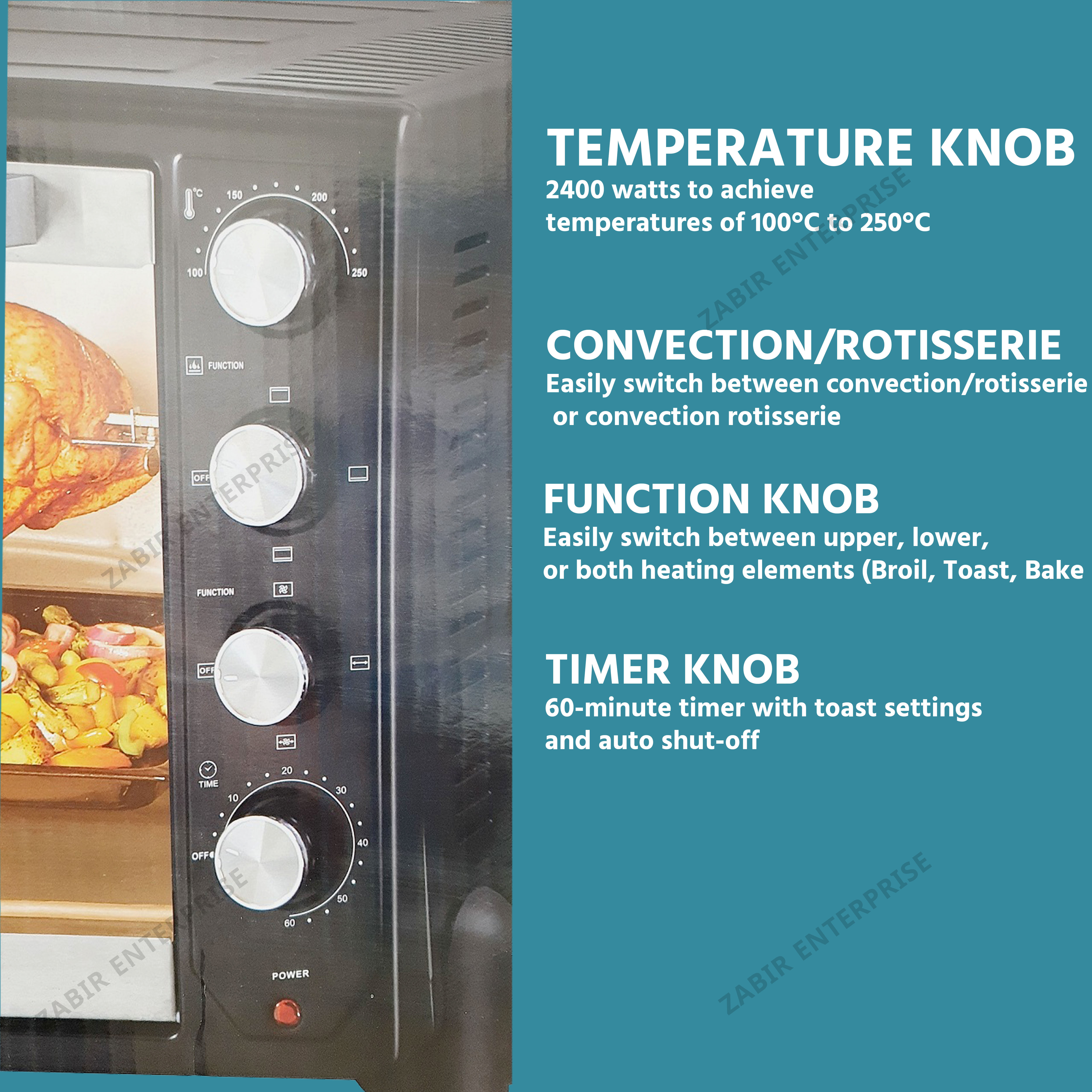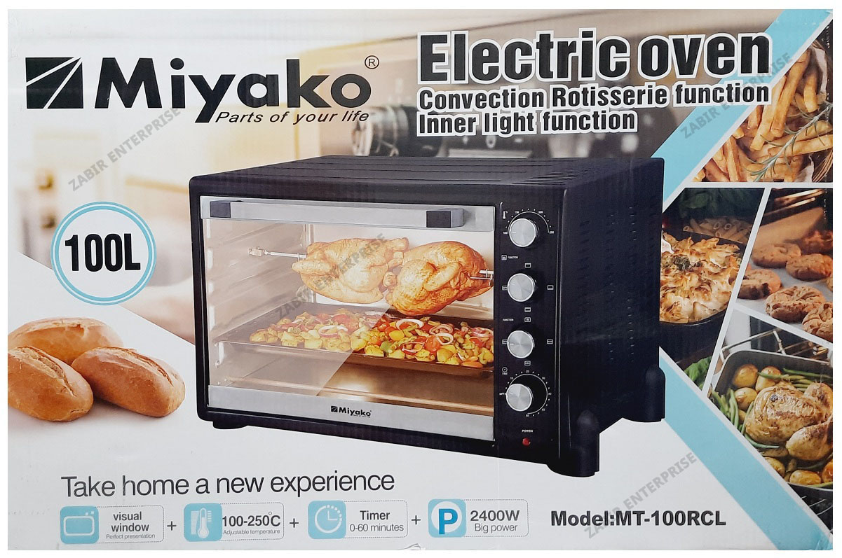 Miyako MT-100RCL Electric Oven For Baking & Grill Items, 100 Liters Countertop Convection Toaster Oven,Adjustable Temperature & Timer, Bake, Roast, Broil, Toast, Includes Baking Pan, Rack, Rotisserie, Stainless Steel