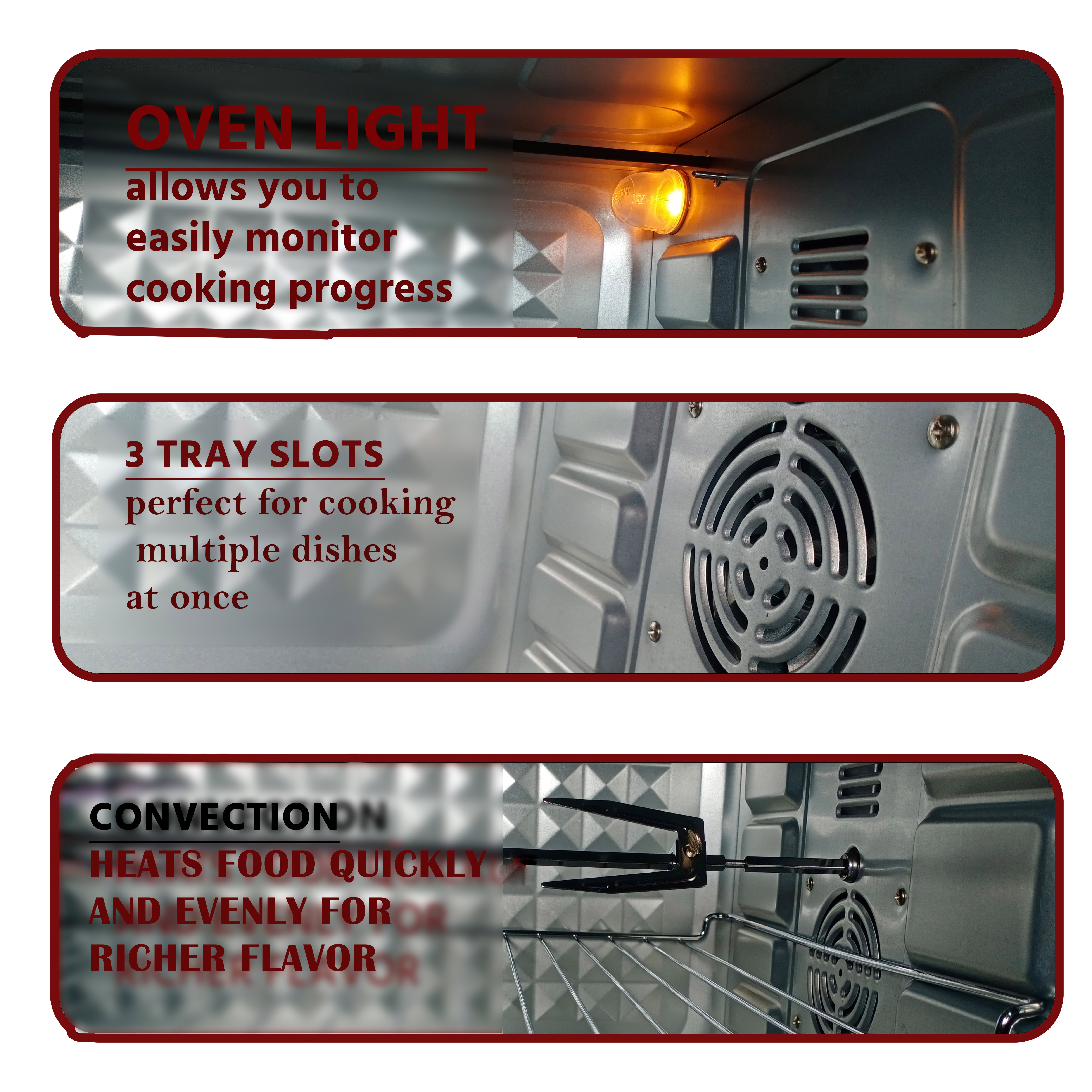 - Multifunctional Cooking: Ideal for baking cakes, roasting meats, grilling vegetables, and more.