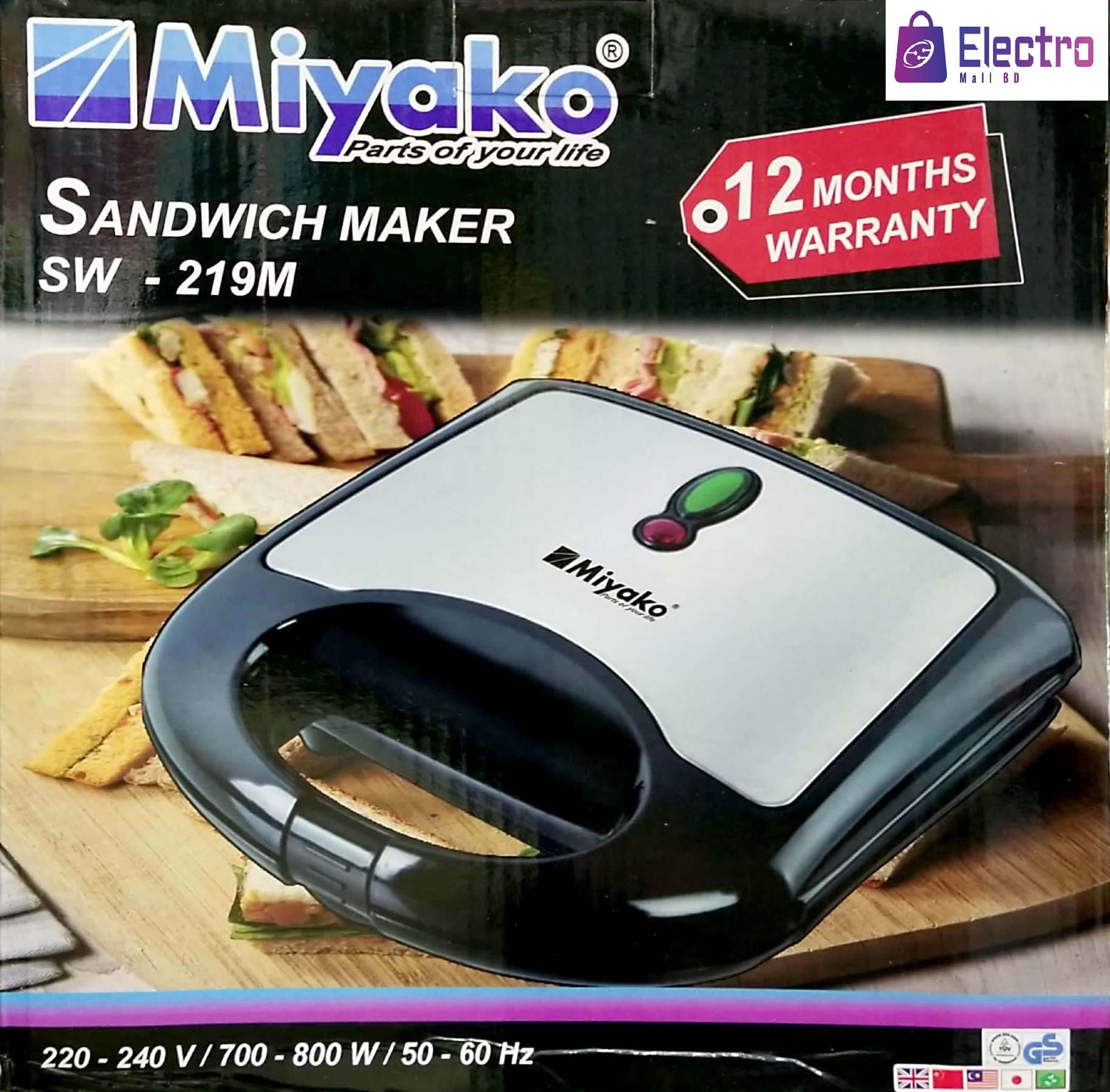 - Enjoy cafΓ©-style toasted sandwiches at home with the Miyako SW-219 MR Sandwich Maker. Designed for speed, safety, and convenience, this compact kitchen essential helps you prepare delicious, healthy sandwiches in minutes β perfect for busy mornings or evening snacks.