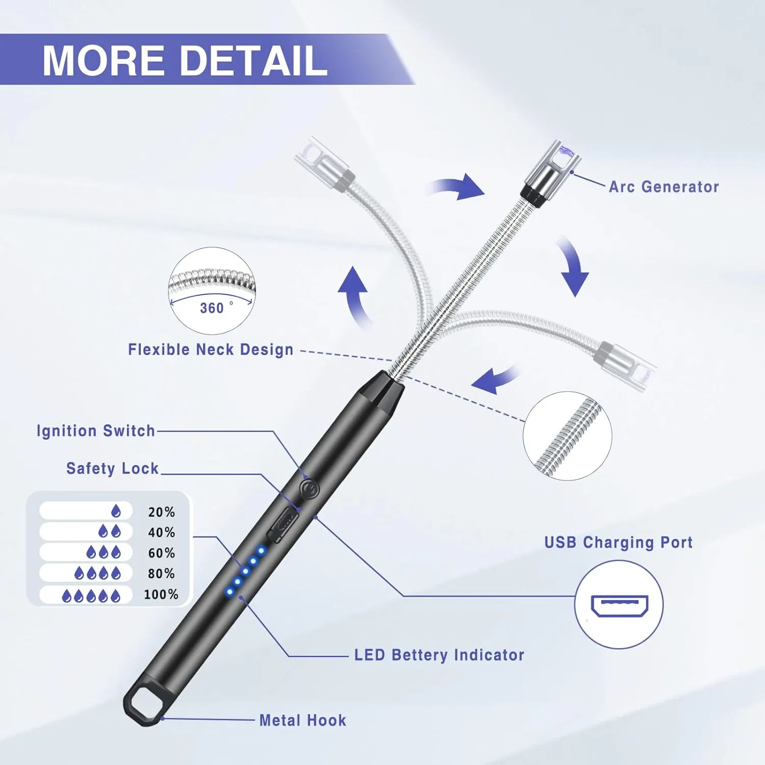 - LONGER FLEXIBLE NECK & LIGHTWEIGHT -Our upgraded lighter long has a long flexible neck. It is easily rotated 360 degree for different lighting needs. Lightweight size is suitable for daily indoor and outdoor use.