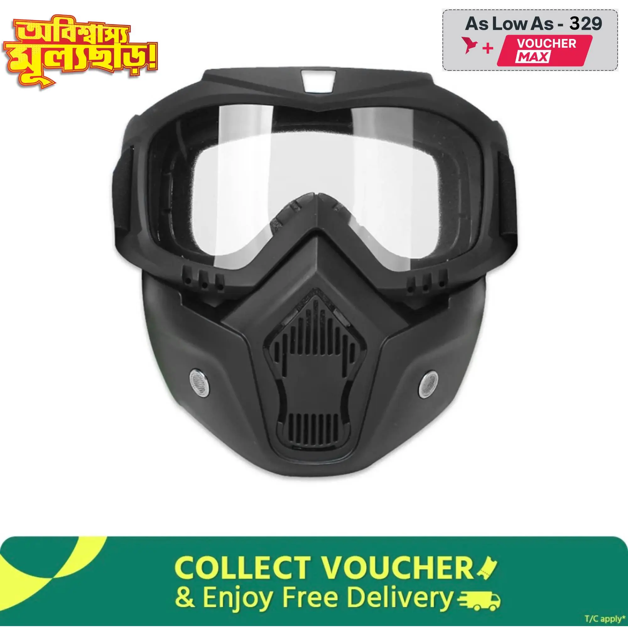 Goggle Mask Anti Scratch Uv Protective Face & Eyewear Windproof Dirt Shield with Soft Foam Padded Detachable Mouth Filter for Cycling Bike Off Road Racing Ride Unisex