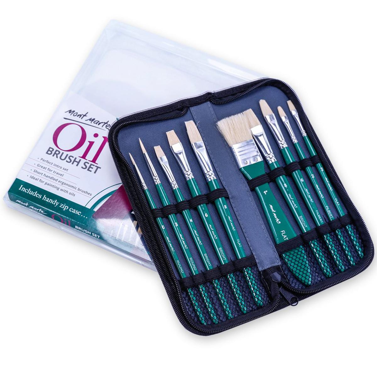 - 10 brushes included (1 x Flat 2, 1 x Filbert 2, 1 x Filbert 6, 1 x Bright 8, 1 x Flat 1", 1 x Flat 8, 1 x Bright 6, 1 x Bright 4, 1 x Round 3, 1 x Round 0 )