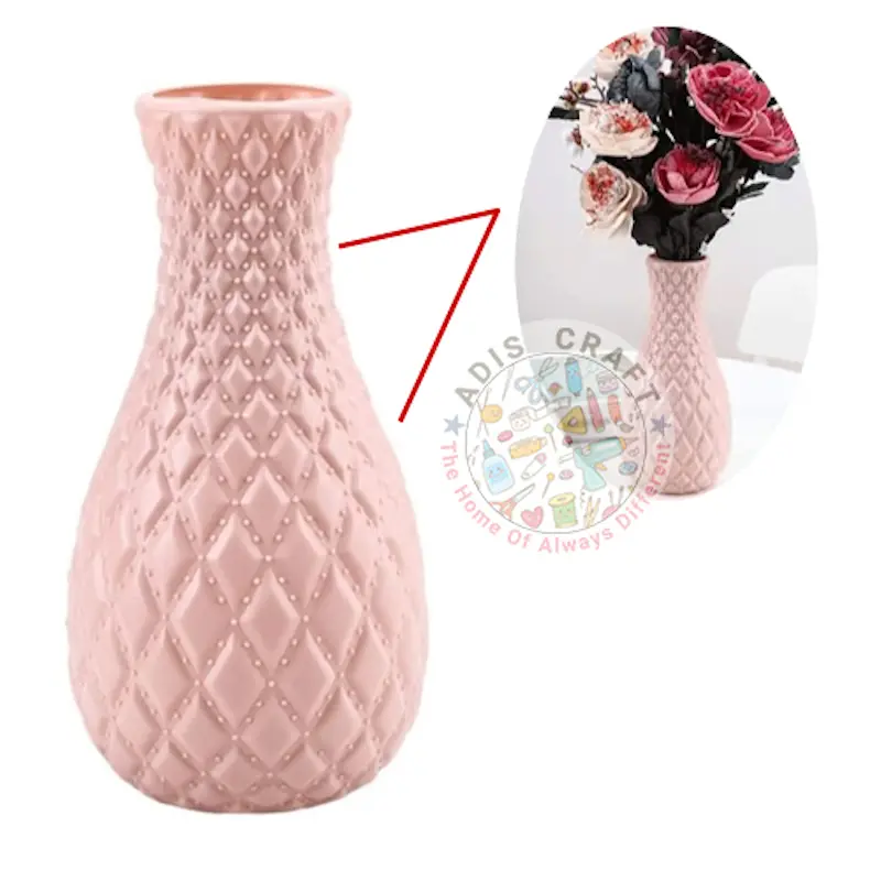 বাড়ির লিভিং রুম ডেকোরেশনের জন্য মডার্ন ডায়মন্ড প্যাটার্ন প্লাস্টিকের ফুলদানি পাত্র (1psc)