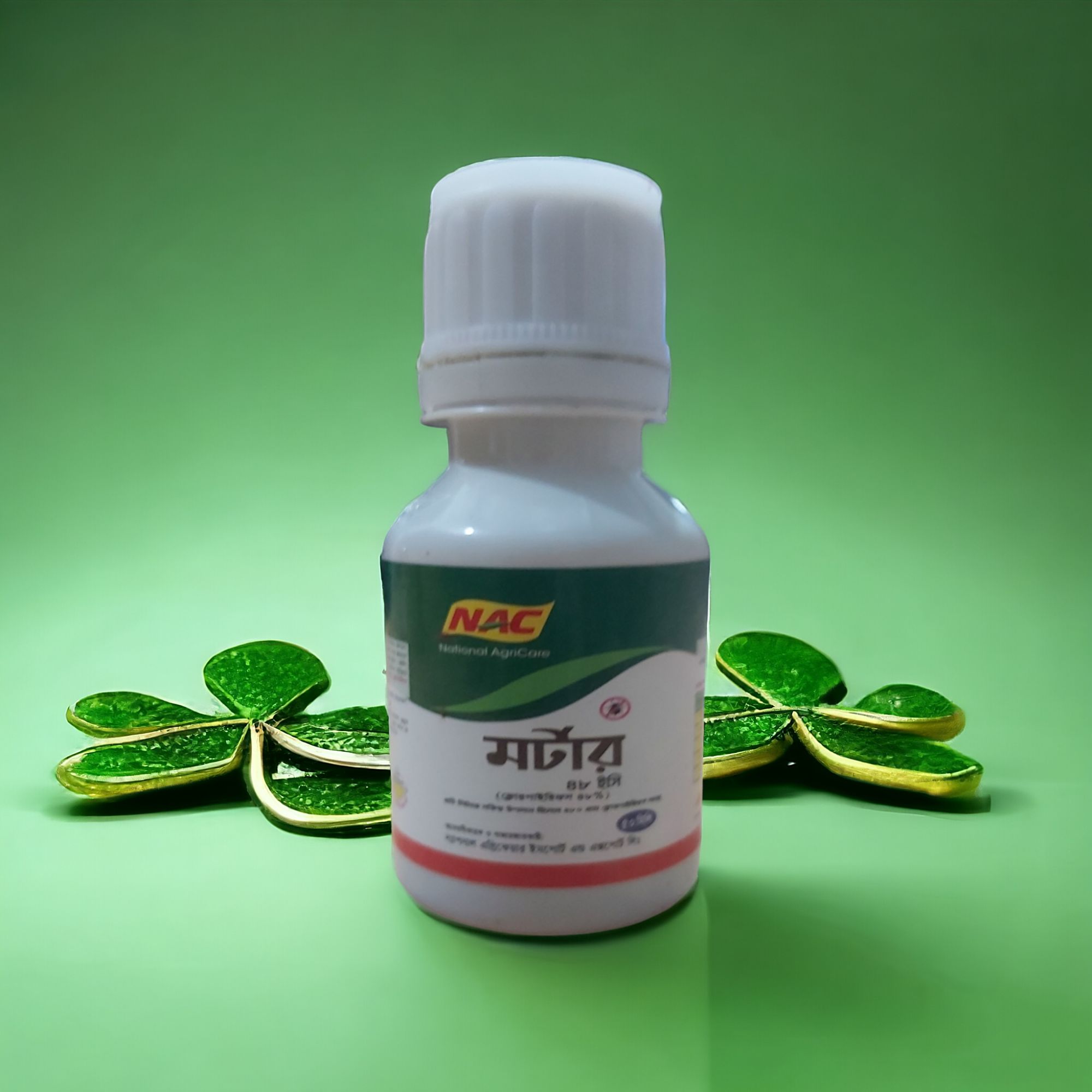 মর্টার ৪৮ ইসি।মাত্রাও ব্যবহার বিধি:-তুলা,বরবটি, ধান,আলু,চা,কলা, পেয়ারা,আম,ভুট্রা। পোকার নাম:-গুটিপোকা,জাব পোকা,পামরী পোকা,কাটুই পোকা, উই পোকার জম। মর্টার ৪৮ ইসিএটি একটি স্পর্শক, পাকস্থলীয় এবং শ্বাসরোধক ক্রিয়াসম্পন্ন অর্গানোফসফরাস জাতীয় ইমালশনযোগ্য তরল কীটনাশক। শিশুদের নাগালের বাহিরে রাখেন। ব্যবহারের সময় প্রয়োজনীয় সতর্কতা অবলম্বন করুন।প্যাক সাইজ:-100 মিলি বোতল।