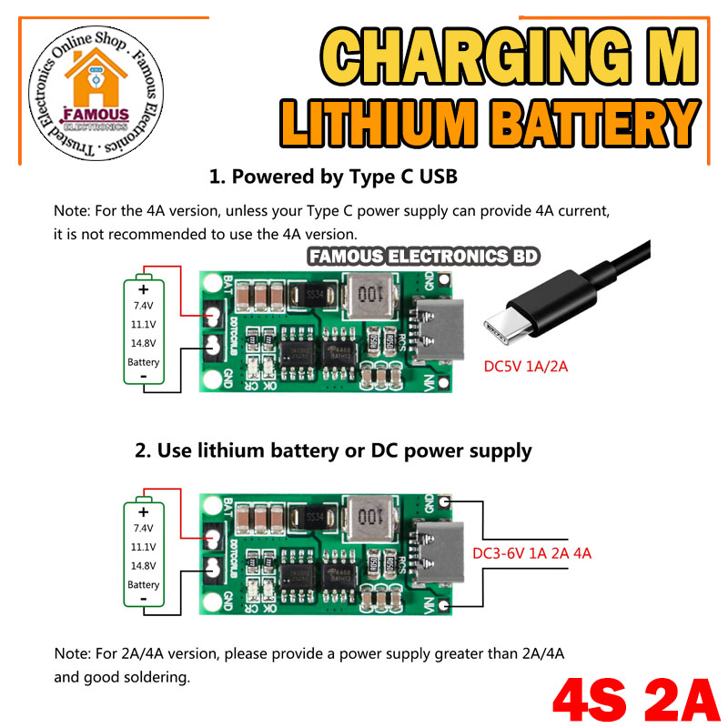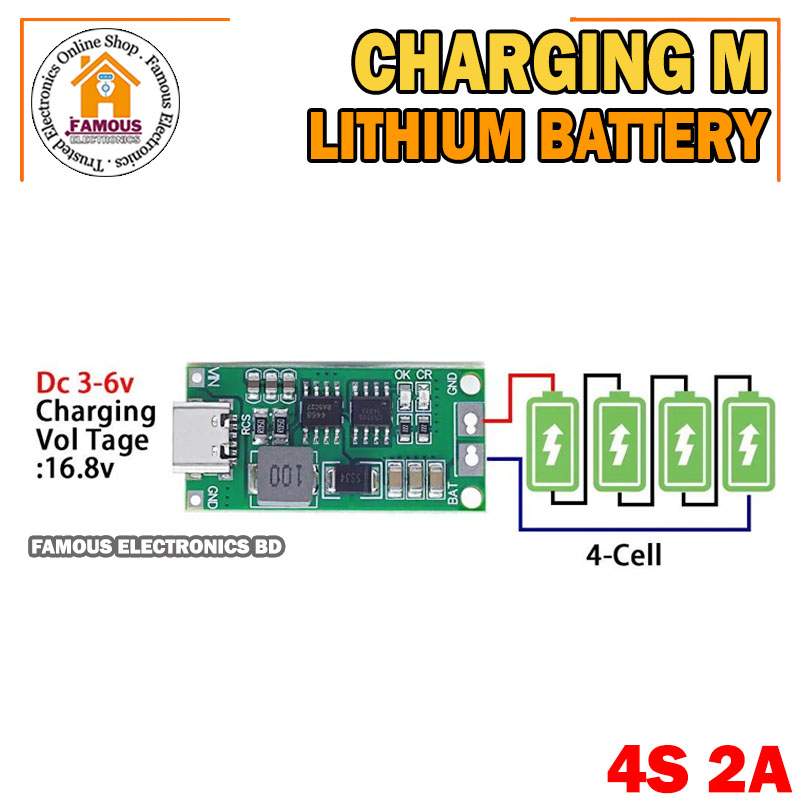 Input voltage: DC 3-6V (DC 3.7V 5V recommended) Input current: 1A (1A version); 2A (2A version); 4A (4A version) Charging voltage: 16.8V Charge current: 0.28A (1A version); 0.56A (2A version); 1.12A (4A version)