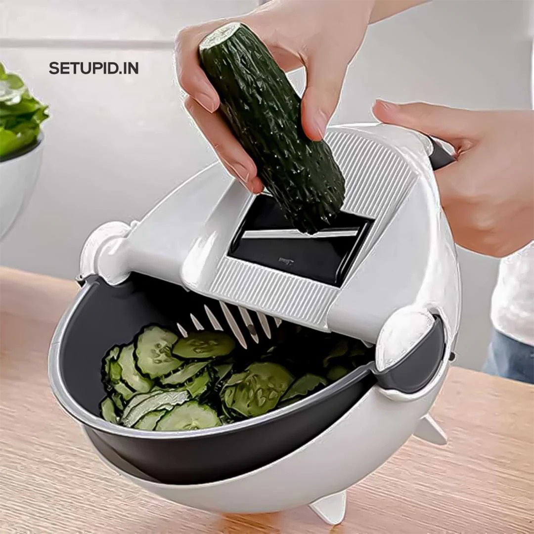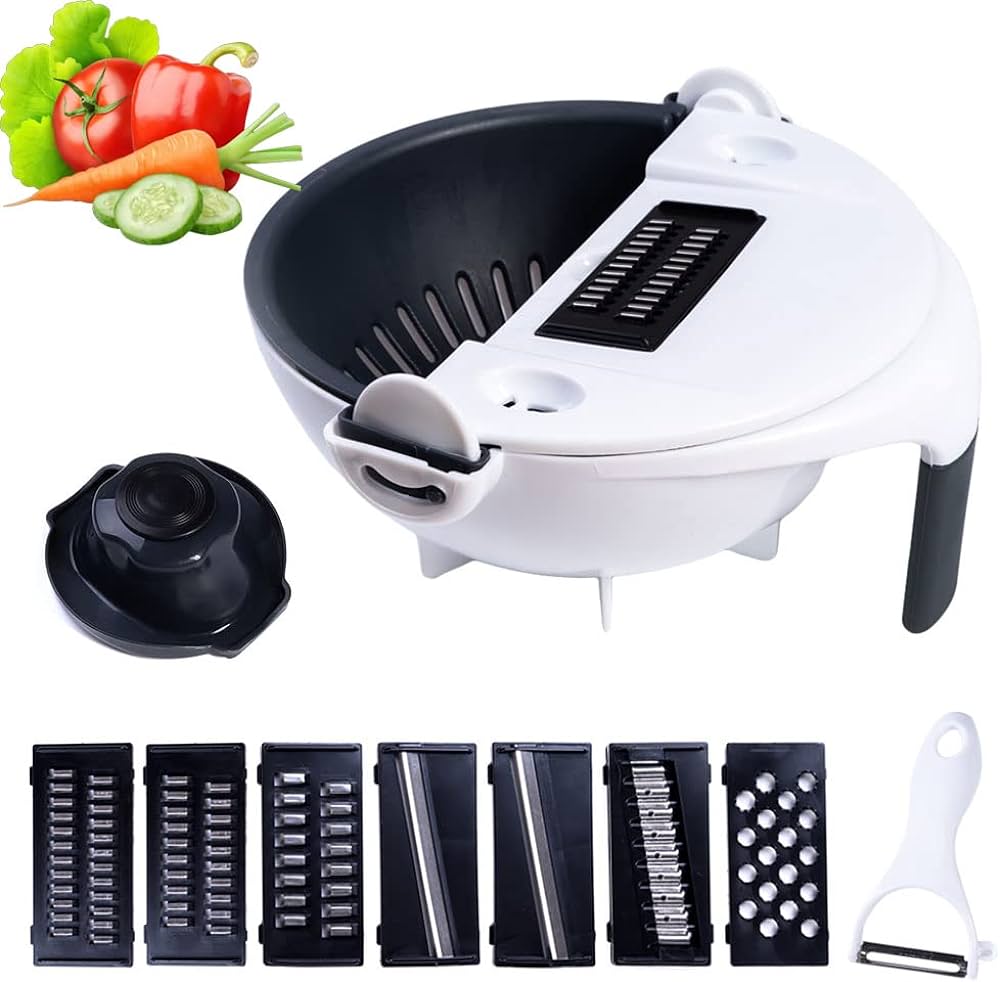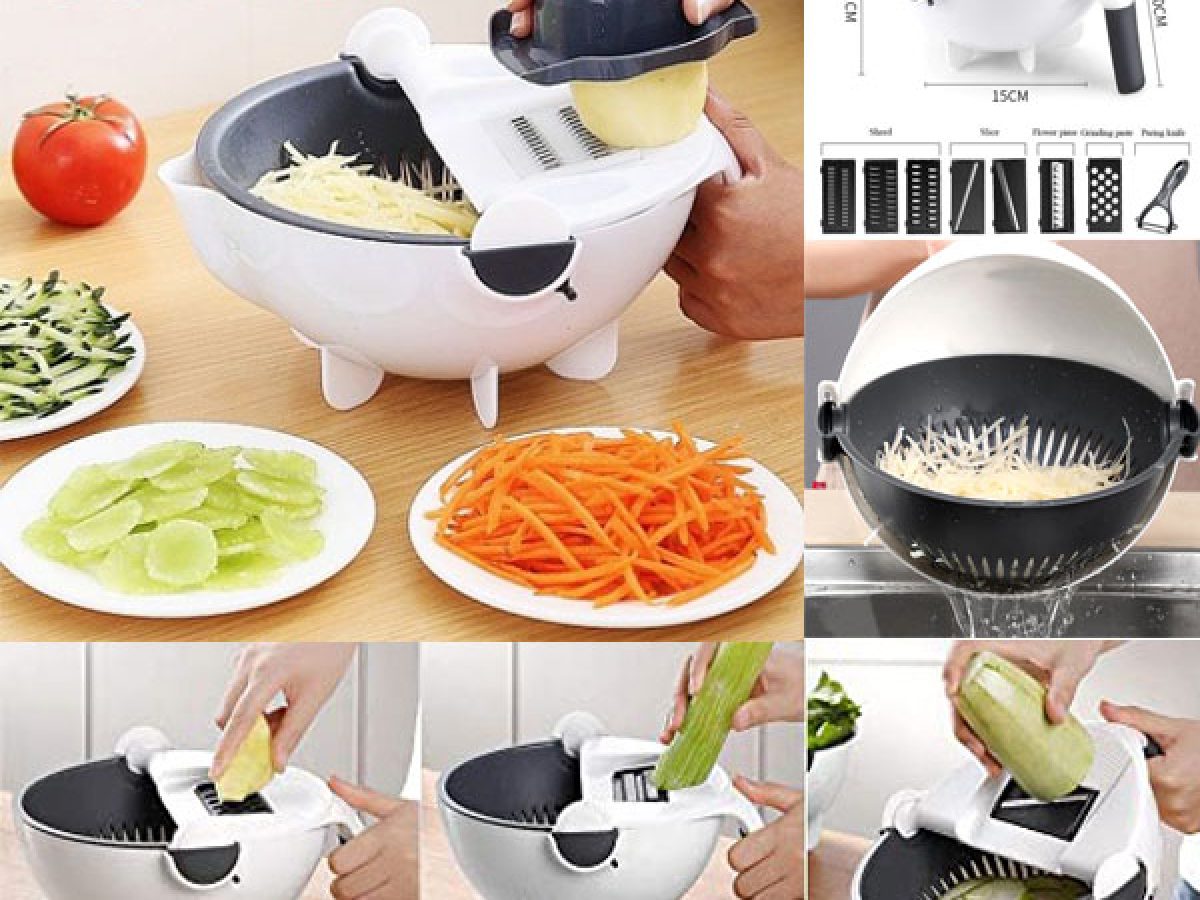 আপনার রান্নাঘরকে আরও সুবিধাজনক করুন এই মাল্টিফাংশন ম্যাজিক রোটেট ভেজিটেবল কাটার দিয়ে। এটি ড্রেন বাস্কেট সহ আসে, যা ধোয়া সবজি রাখার ও পানি ফেলার সুবিধা দেয়।