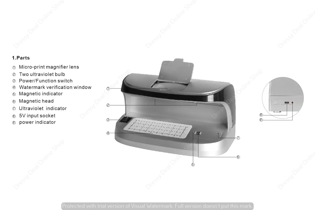 - Built-in magnifier for micro-print verification