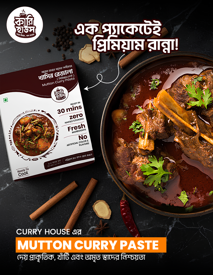আমাদের কারি হাউজ-এর খাসির রেজালা পেস্ট তৈরি করা হয়েছে একদম ঘরোয়া পদ্ধতিতে—যেভাবে মা নিজের হাতে পরিবারের জন্য রান্না করেন। মসলা বাছাই থেকে শুরু করে ভাজা, পেস্ট তৈরি—সবকিছুতেই রাখা হয়েছে যত্ন, সময় আর অভিজ্ঞতার ছোঁয়া। তাই রান্নায় পাওয়া যাবে সেই পরিচিত মায়ের হাতের আসল স্বাদ ও ঘ্রাণ।