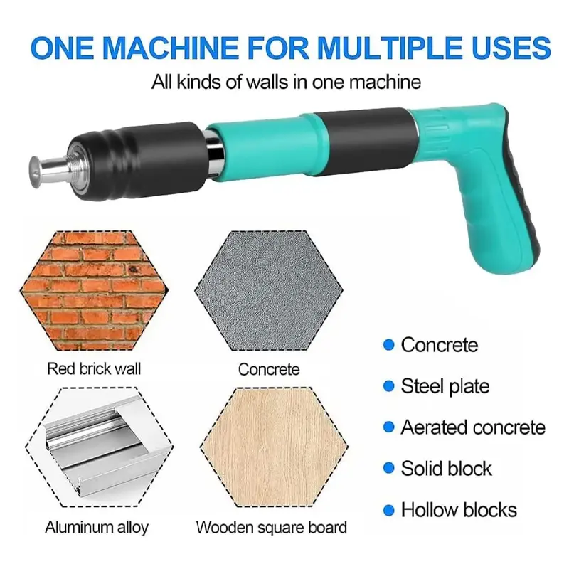 - হাতুড়ি দিয়ে পেরেক ঠোকার চেয়ে ১০ গুণ দ্রুত কাজ করা যায়। বড় প্রোজেক্ট (যেমন: ঘর বানানো, ফ্রেমিং, রুফিং) সময়সীমা কমিয়ে আনে।