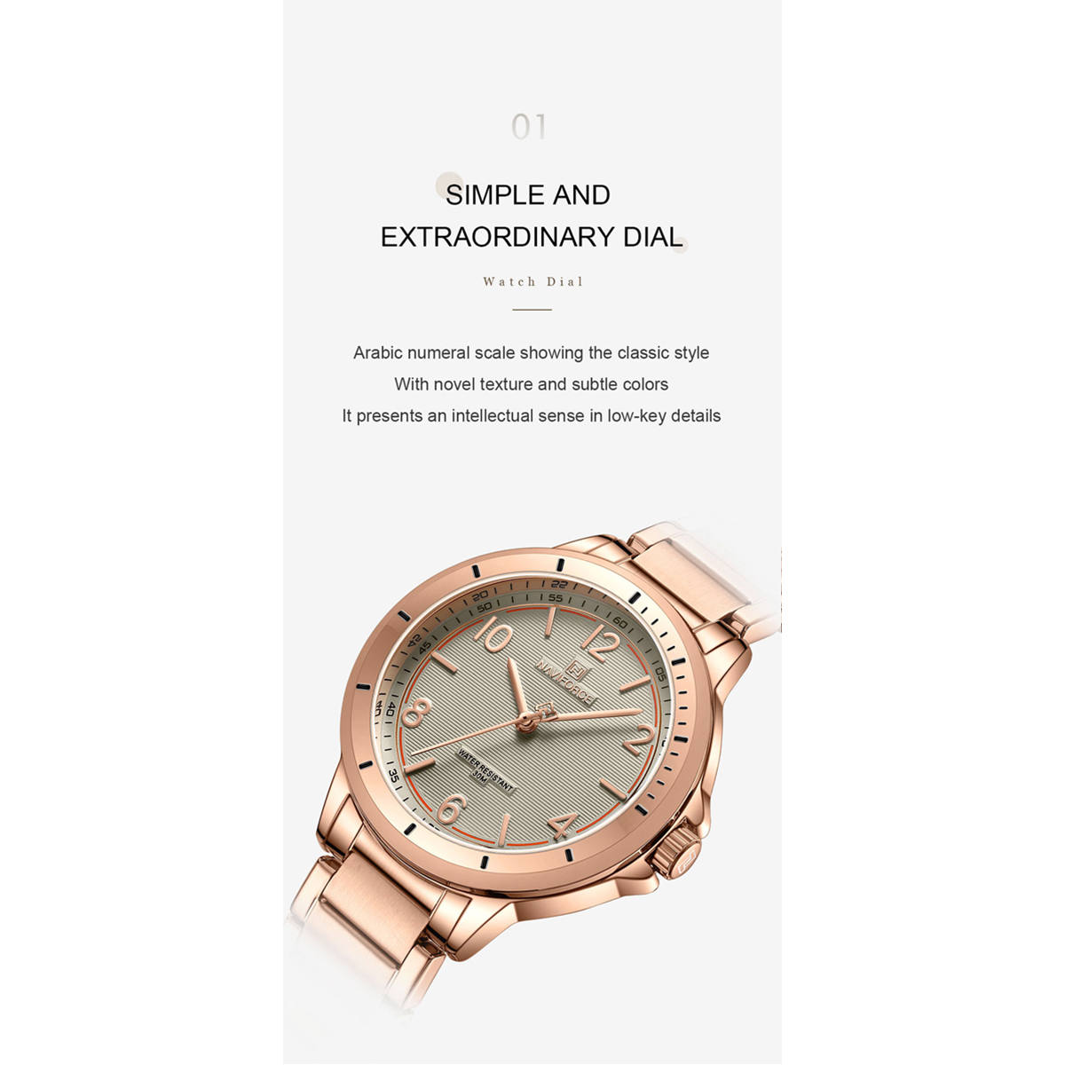 ◉ Simple and extraordinary dial:Arabic numeral scale showing the classic style,With novel texture and subtle colors,It presents an intellectual sense in low-key details