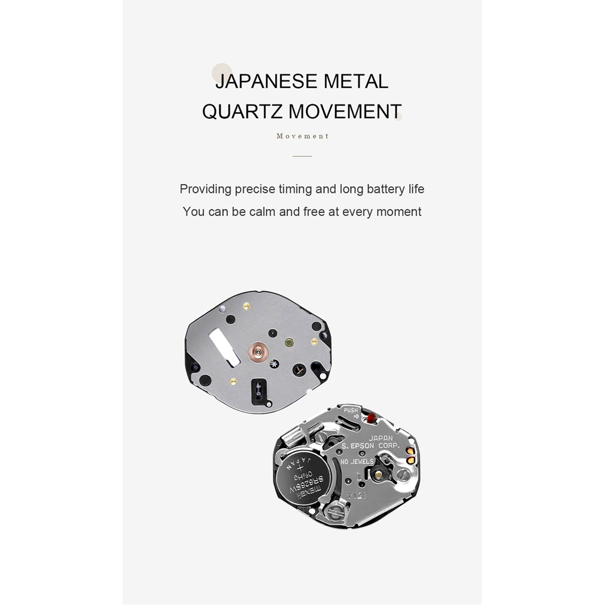◉ Japanese metal quartz movement:Providing precise timing and long battery life,You can be calm and free at every moment