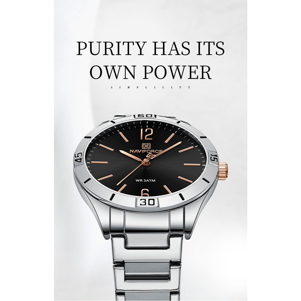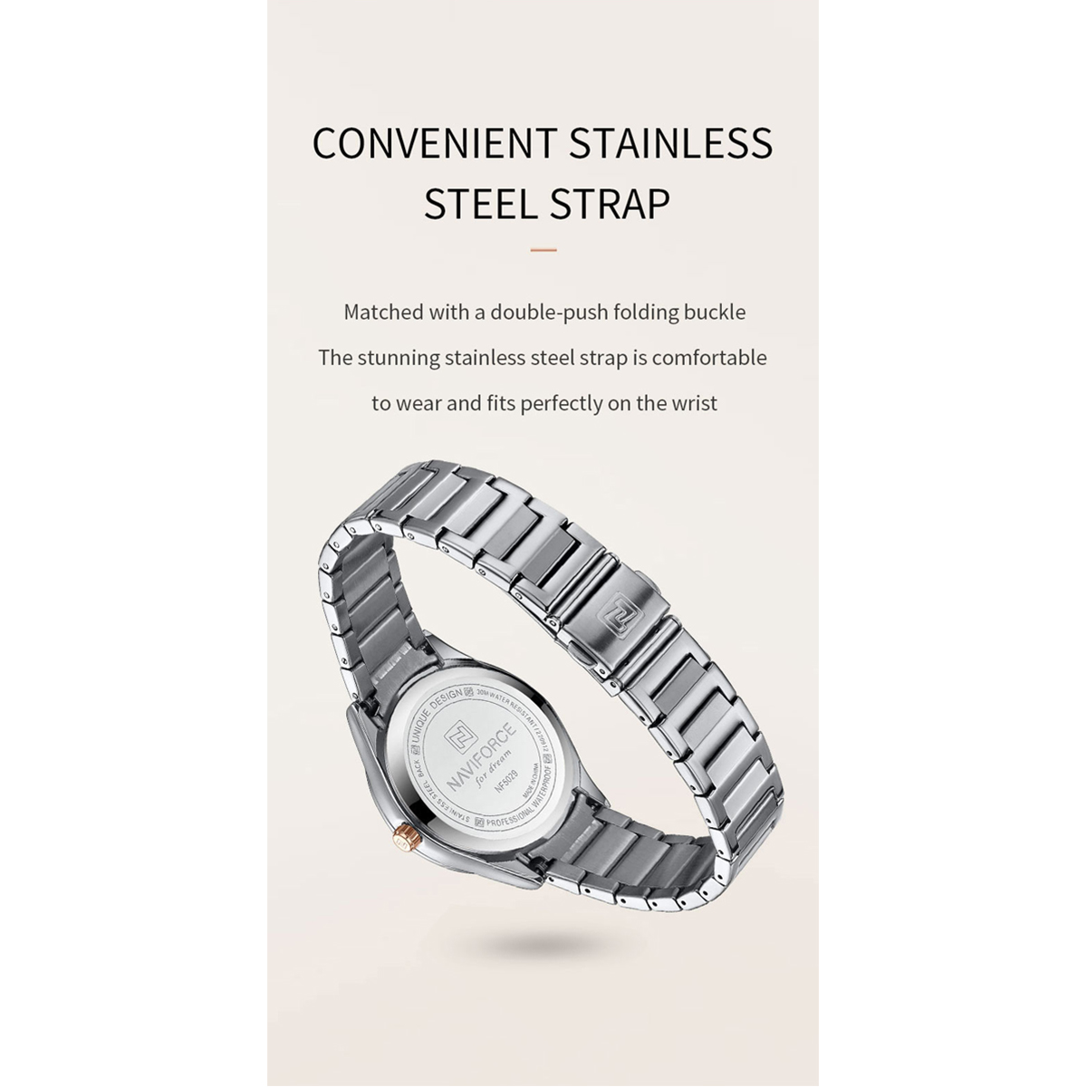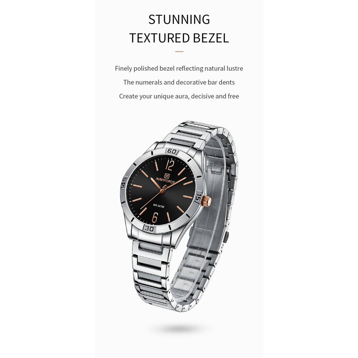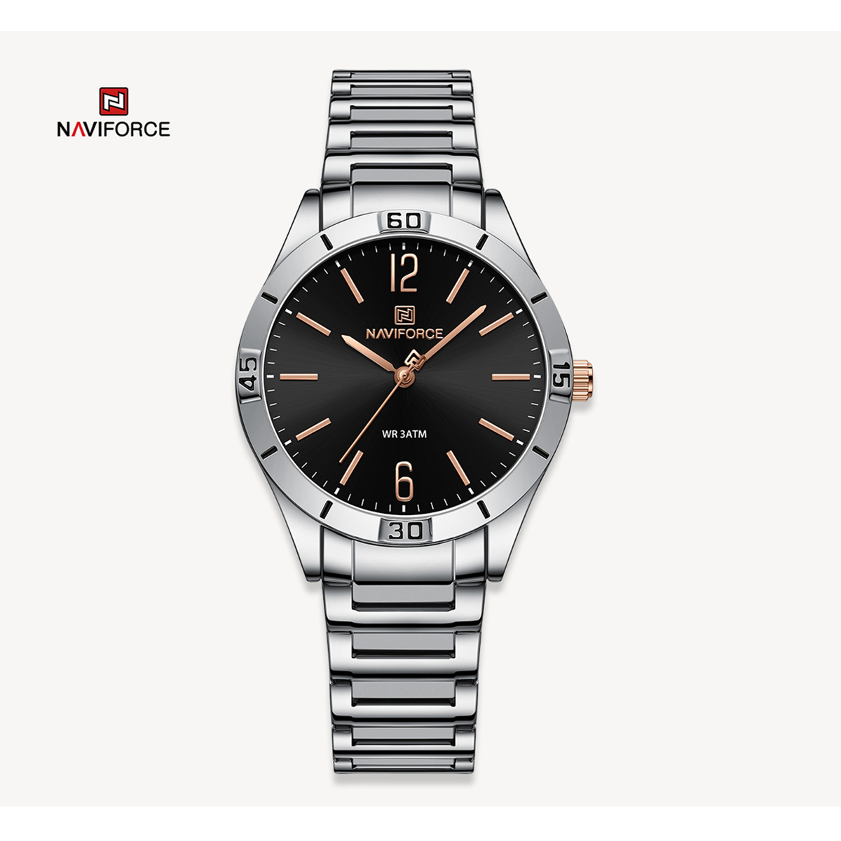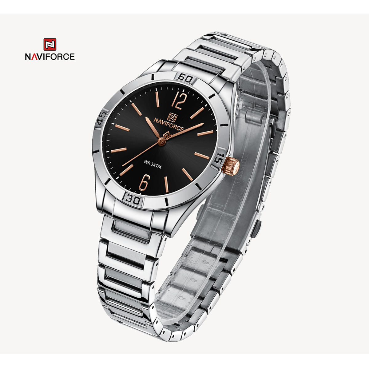 NAVIFORCE NF5029 Silver Stainless Steel Analog Watch For Women - Black & Silver