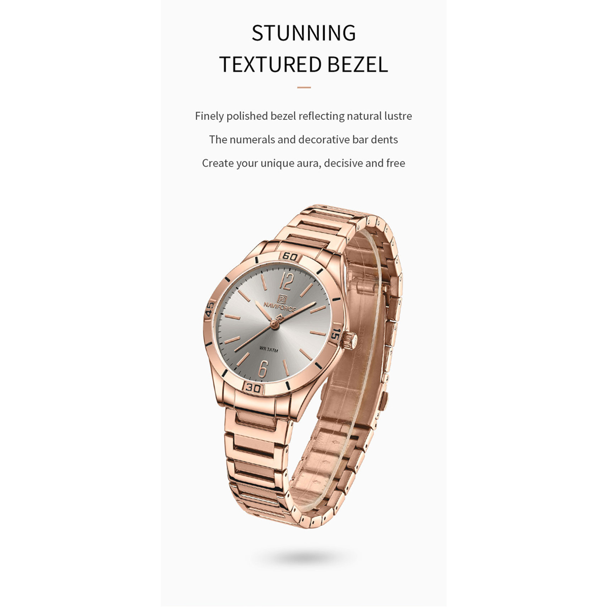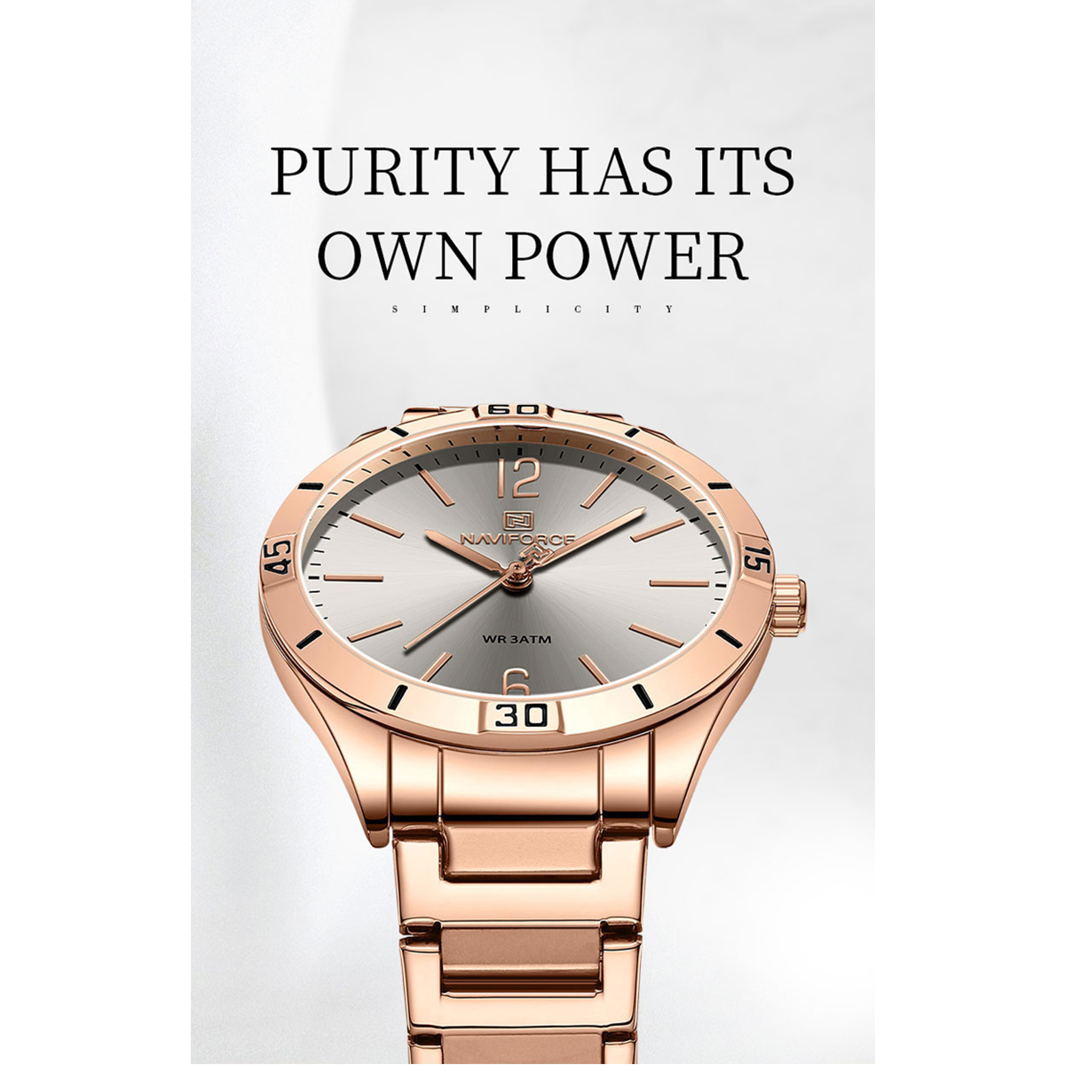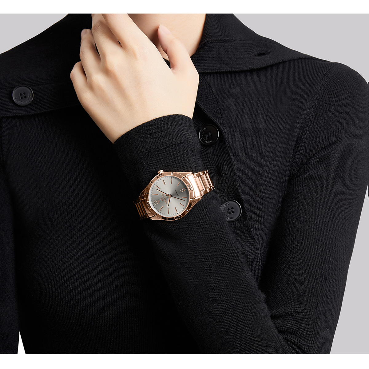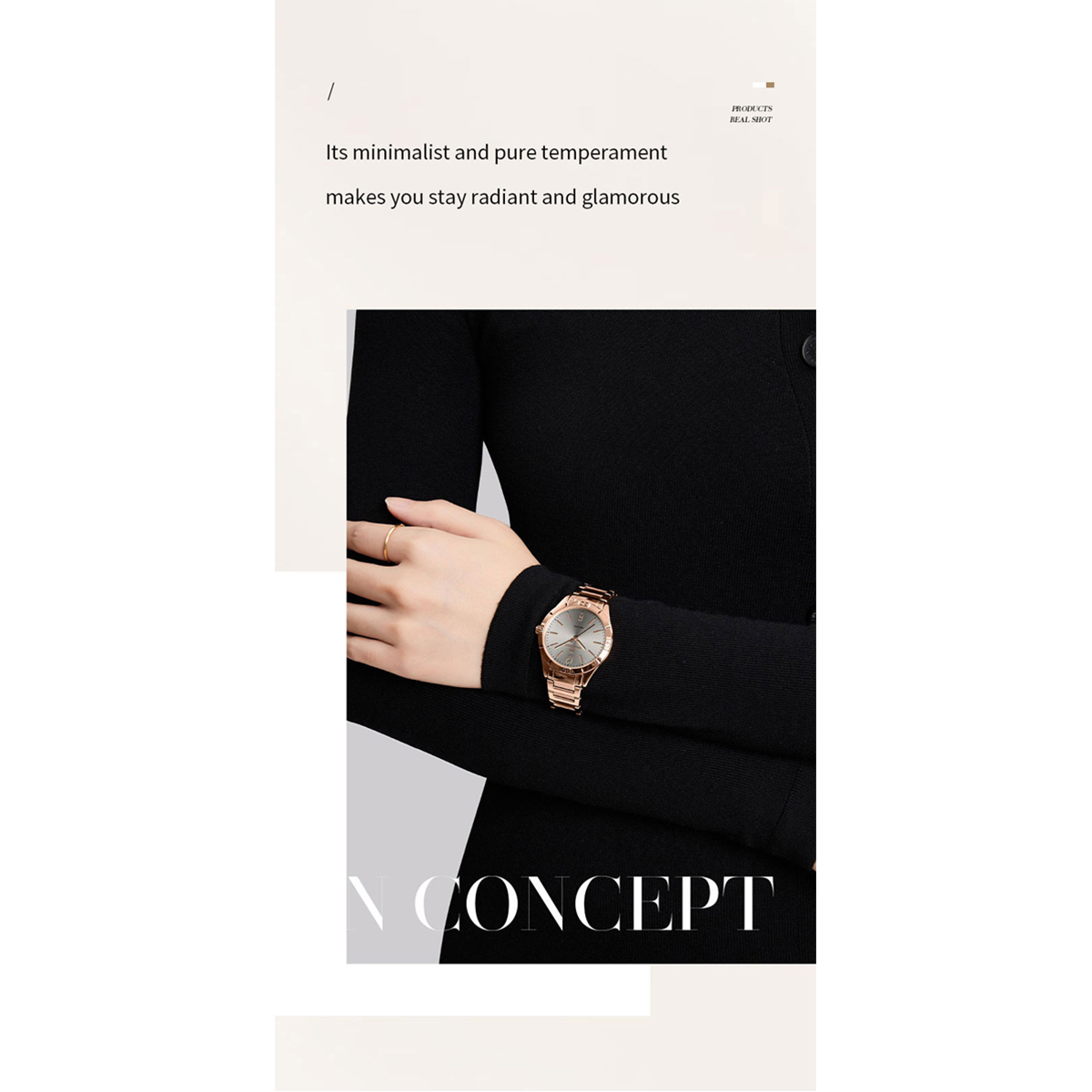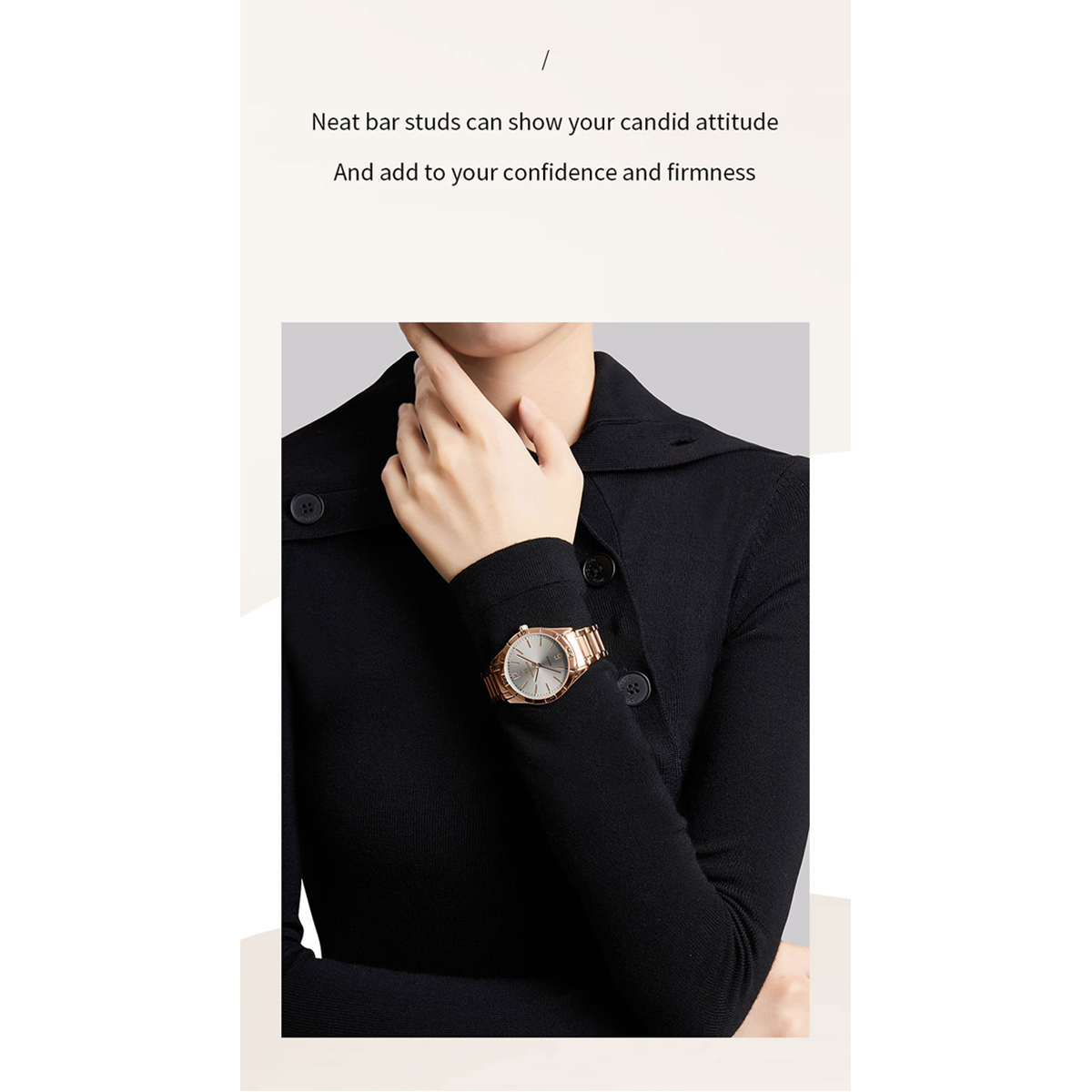 ◉ Design concept:A classic round dial with simple silhouette Shows your neat and candid attitude. Studs are outlined with clear and powerful linesThat complement the metallic case so you can walk around the city with ease.