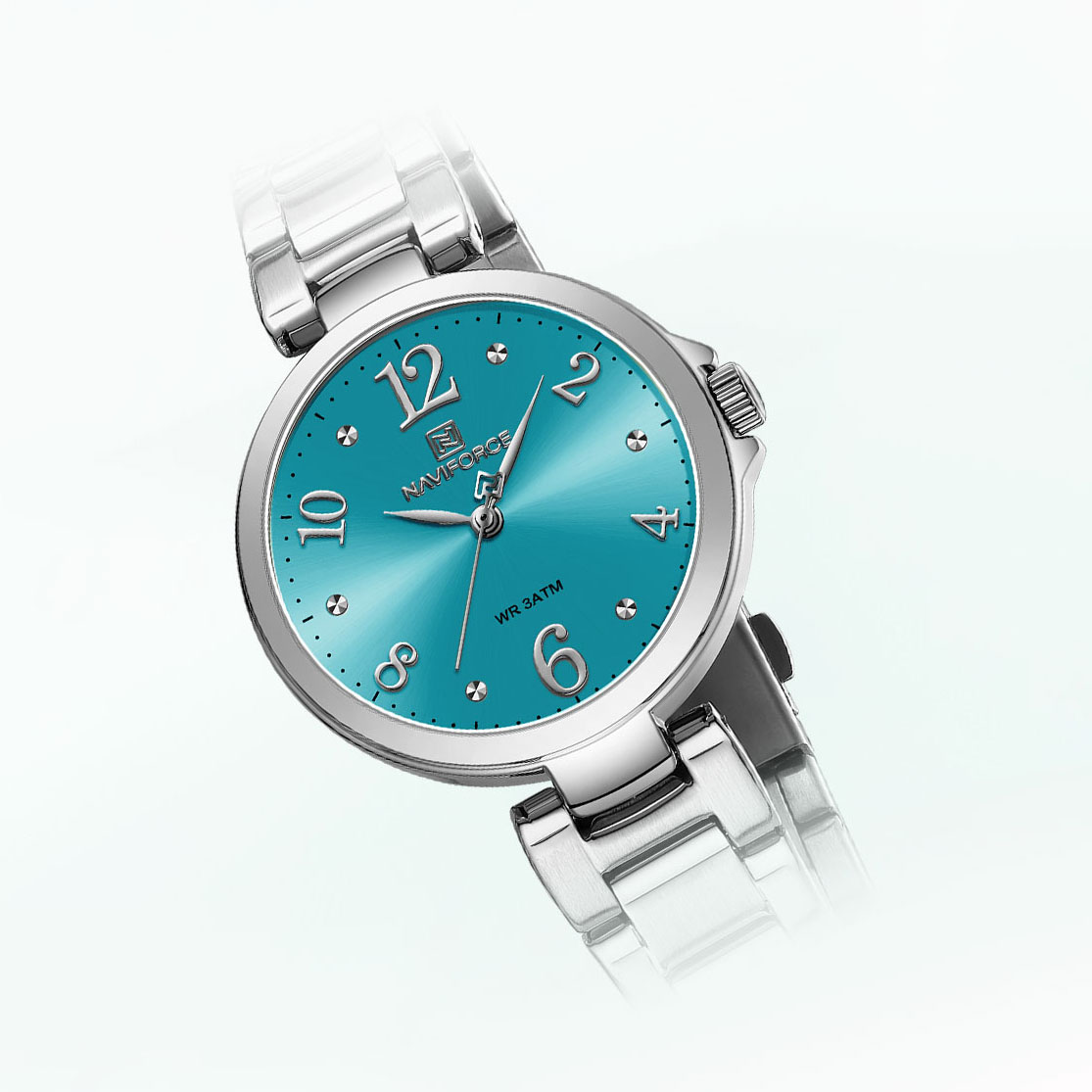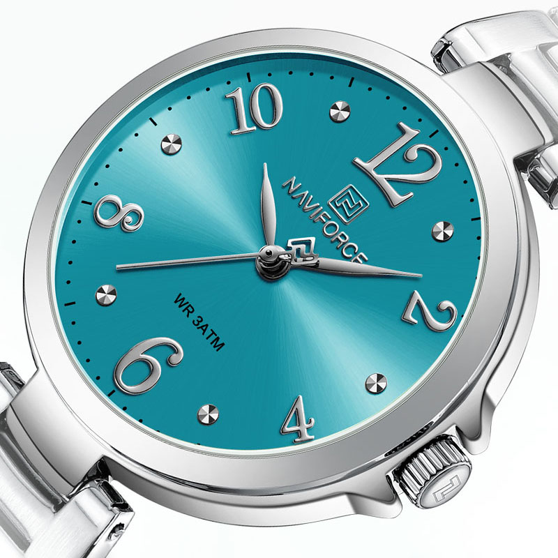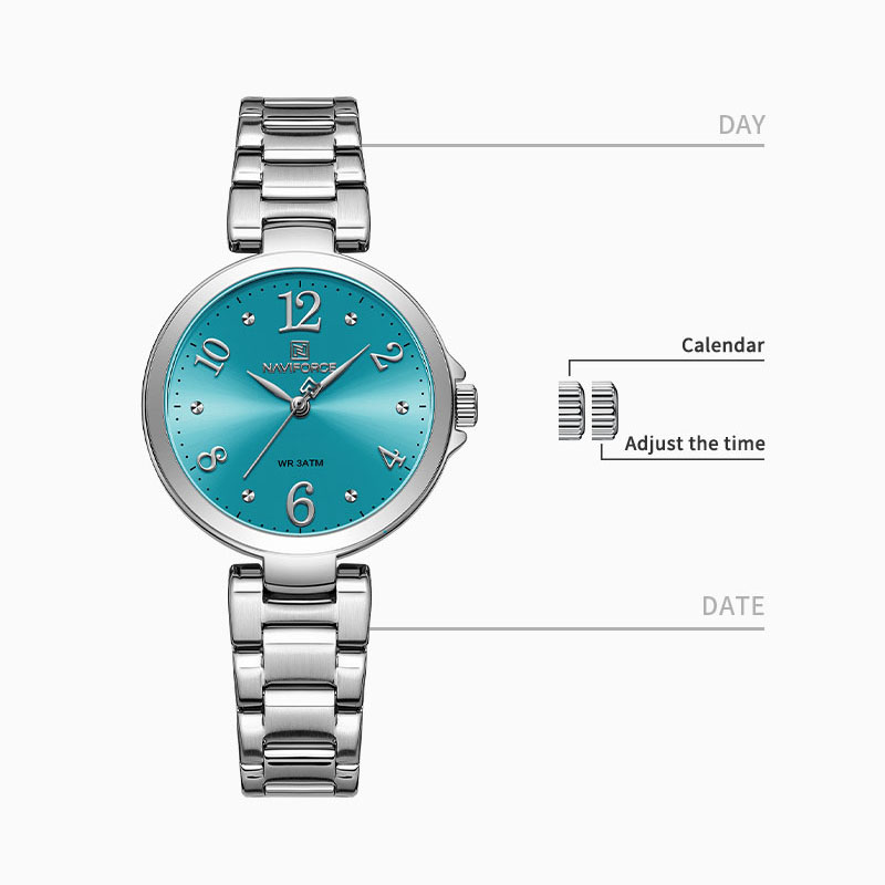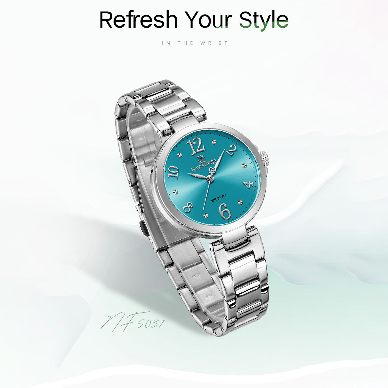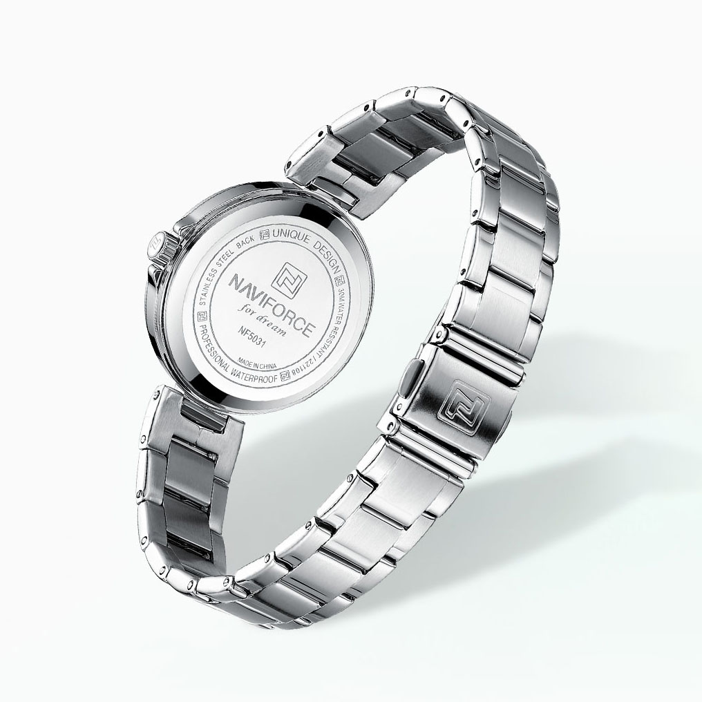 ◉ Comfortable and versatile silver stainless steel strap,Paired with a double-press ,folding clasp for easy wearing,Relaxed and free, revealing a casual and carefree attitude;