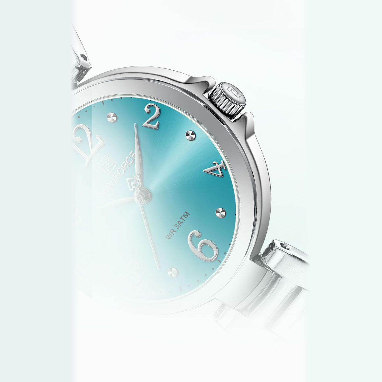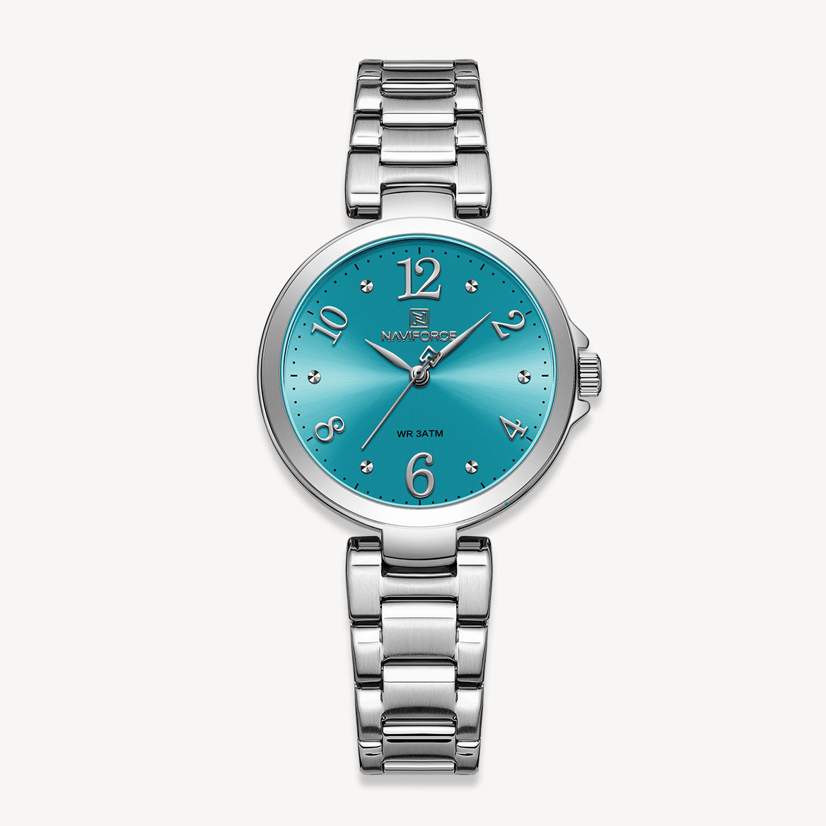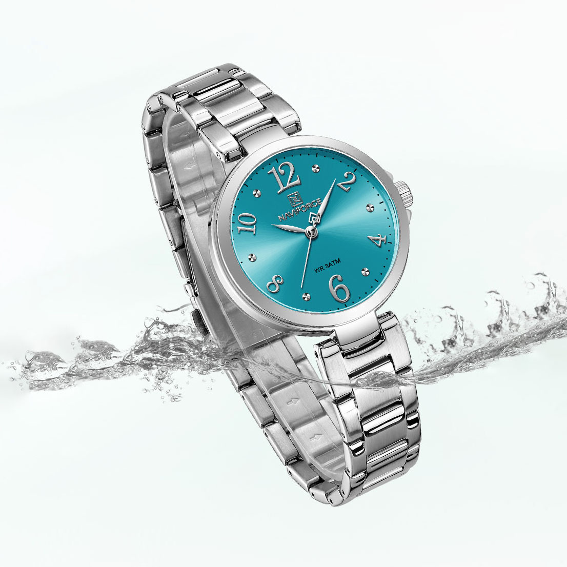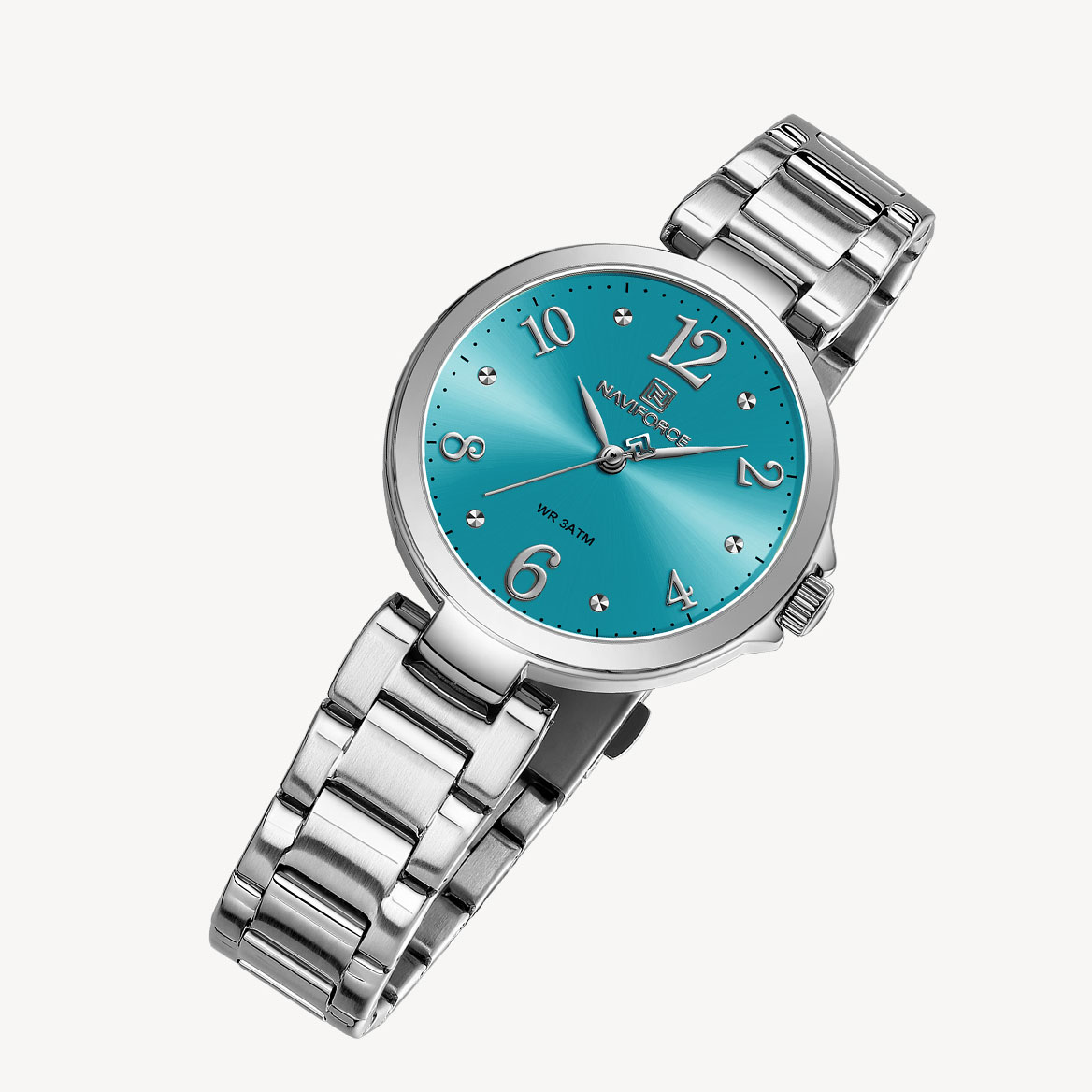 ◉ Comfortable and versatile silver stainless steel strap,Paired with a double-press ,folding clasp for easy wearing,Relaxed and free, revealing a casual and carefree attitude;