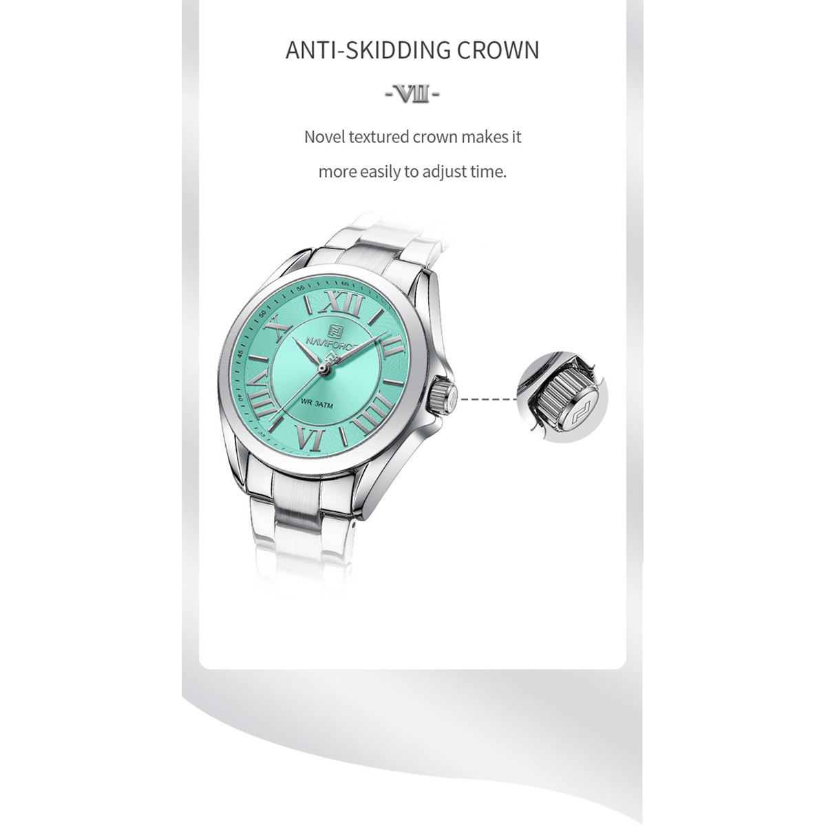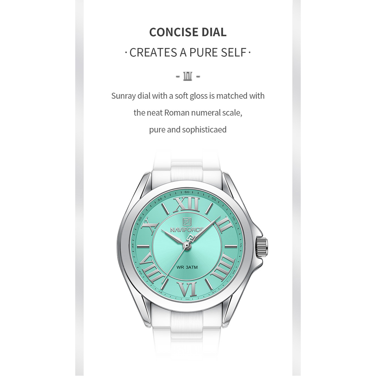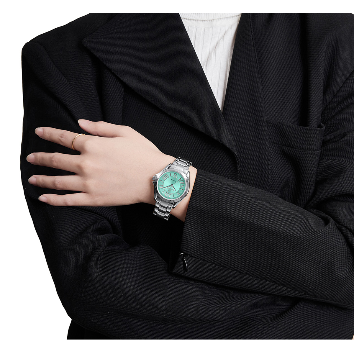 ◉ Design concept:Colliding with metal texture and streamlined design, the dial with Roman numerals and vibrant colors refracts a soft sheen on the sunray pattern, interpreting a new minimalist style. It shows a sense of calm and relaxation..