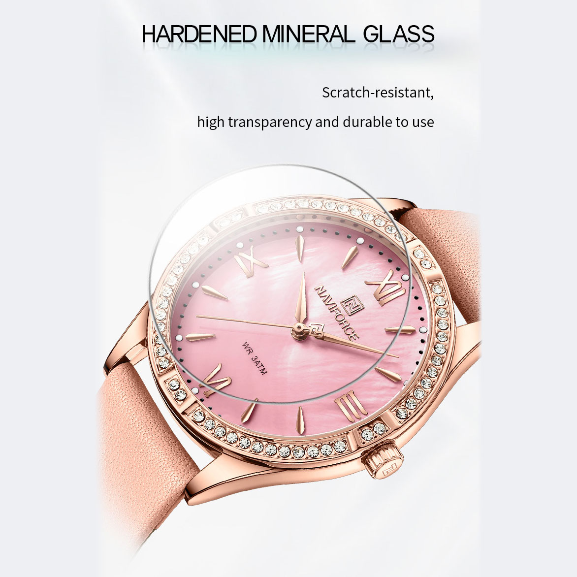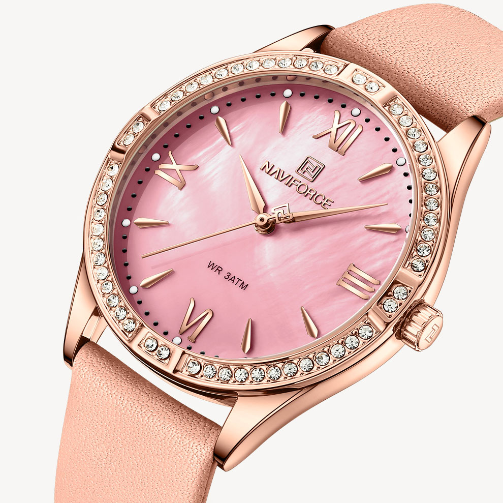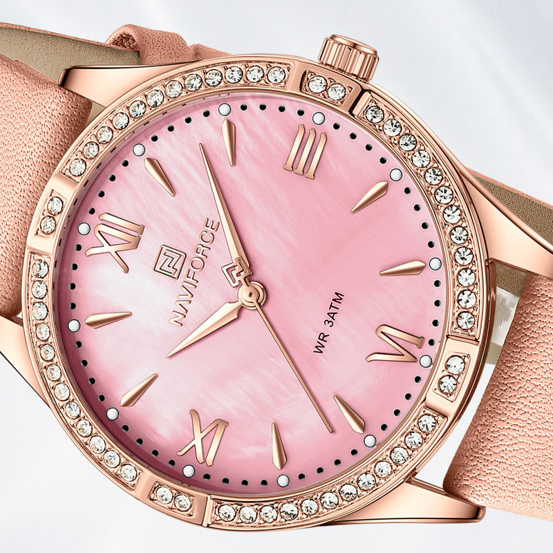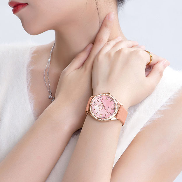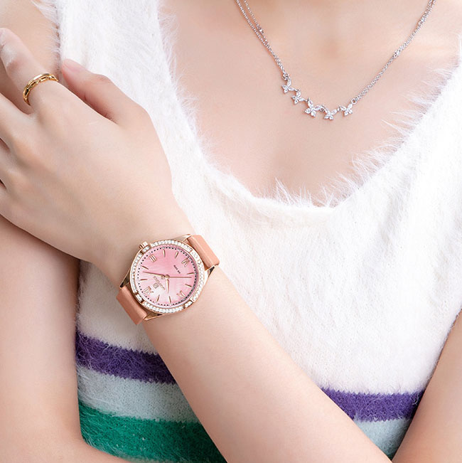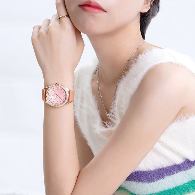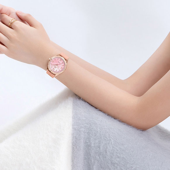 ◉ SPARKLING CRYSTAL-DIAMOND-SET BEZEL:With a circle of shining crystal diamonds ingeniously set on the bezel, reflecting impressive lustre, it highlights your brilliance on your wrist;