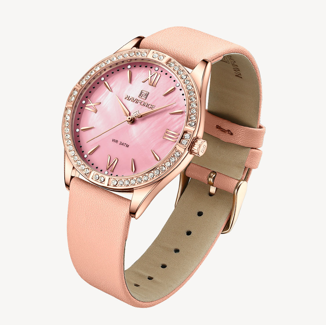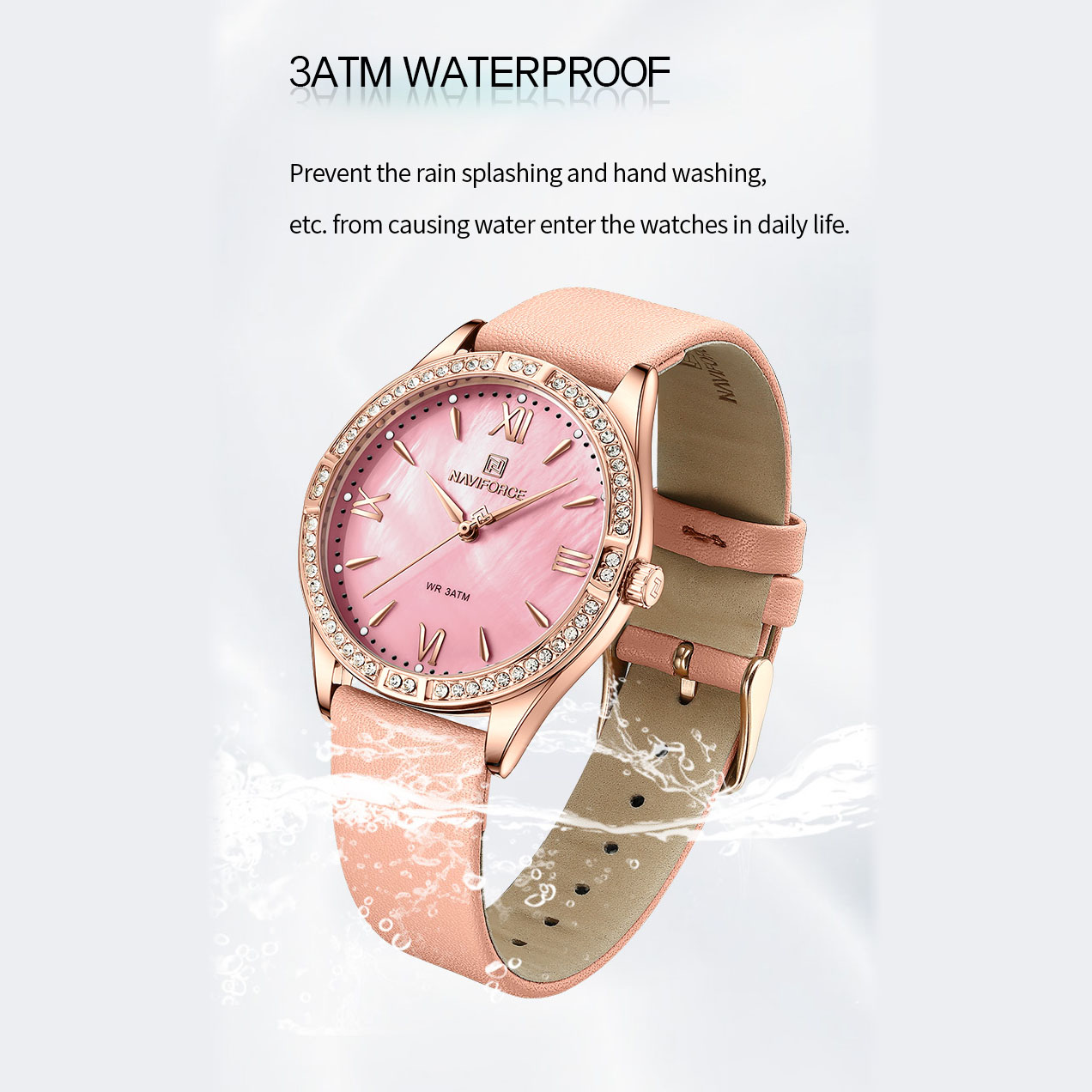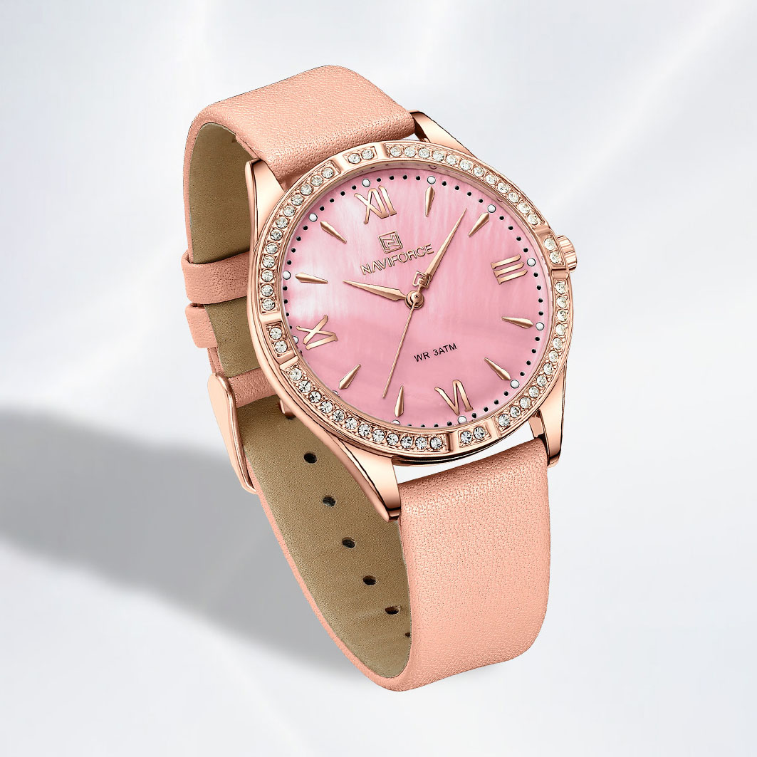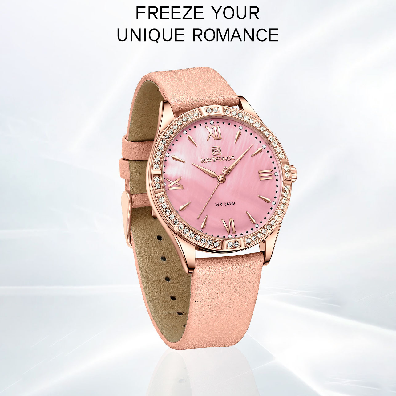 ◉ SPARKLING CRYSTAL-DIAMOND-SET BEZEL:With a circle of shining crystal diamonds ingeniously set on the bezel, reflecting impressive lustre, it highlights your brilliance on your wrist;