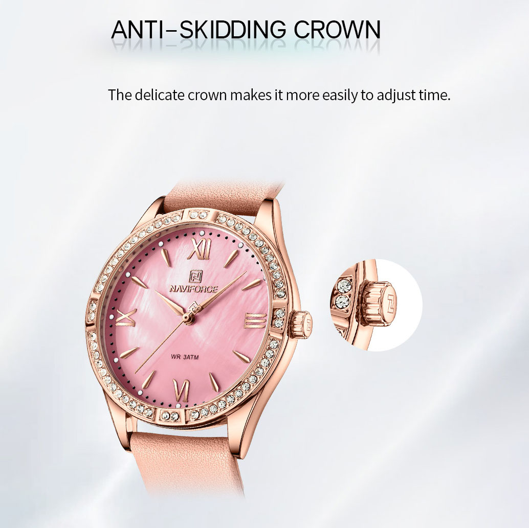 ◉ ANTI-SKIDDING CROWN:The delicate crown makes it more easily to adjust time.