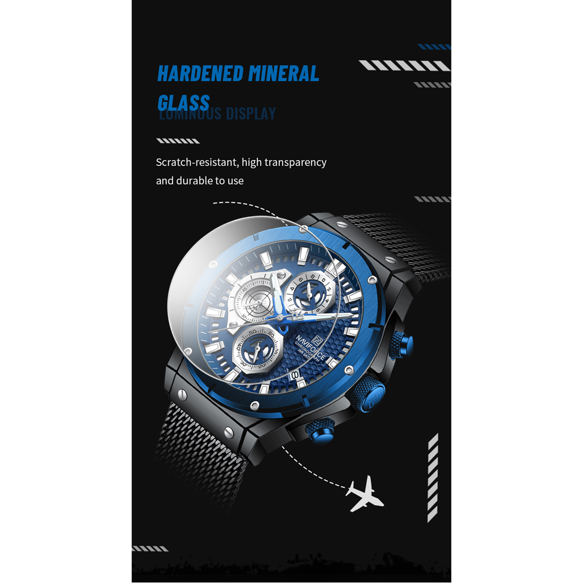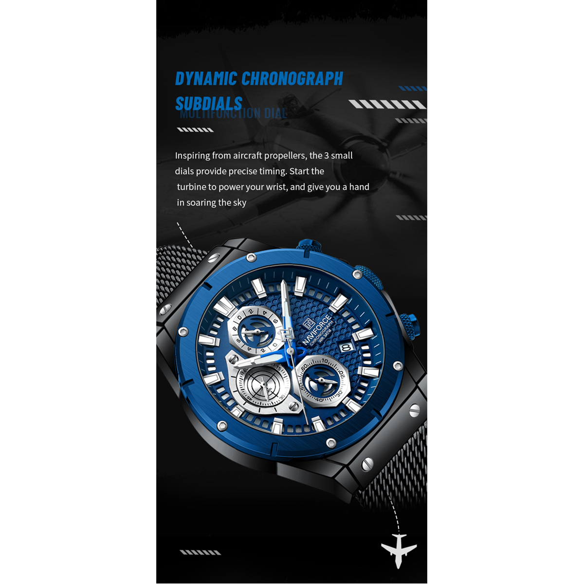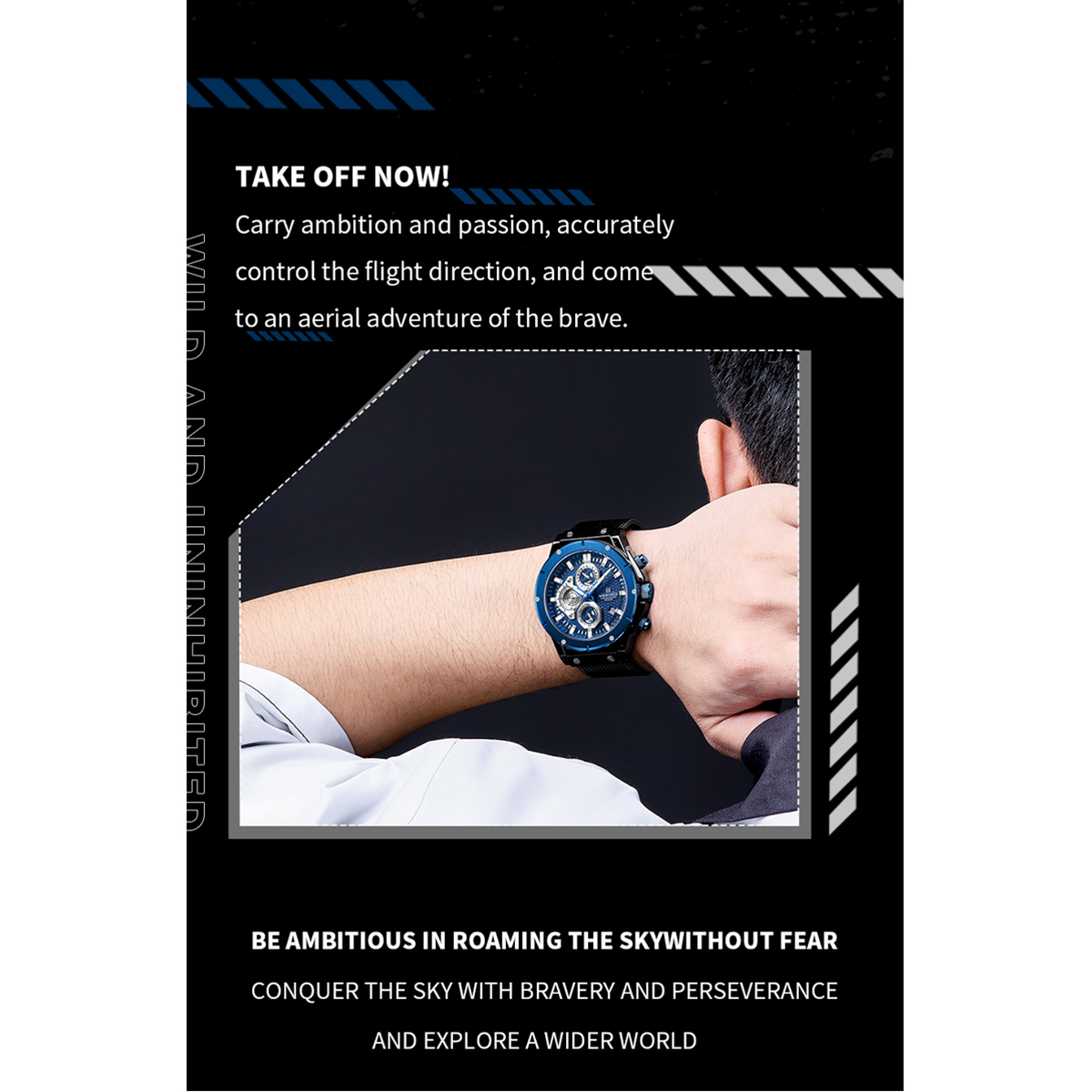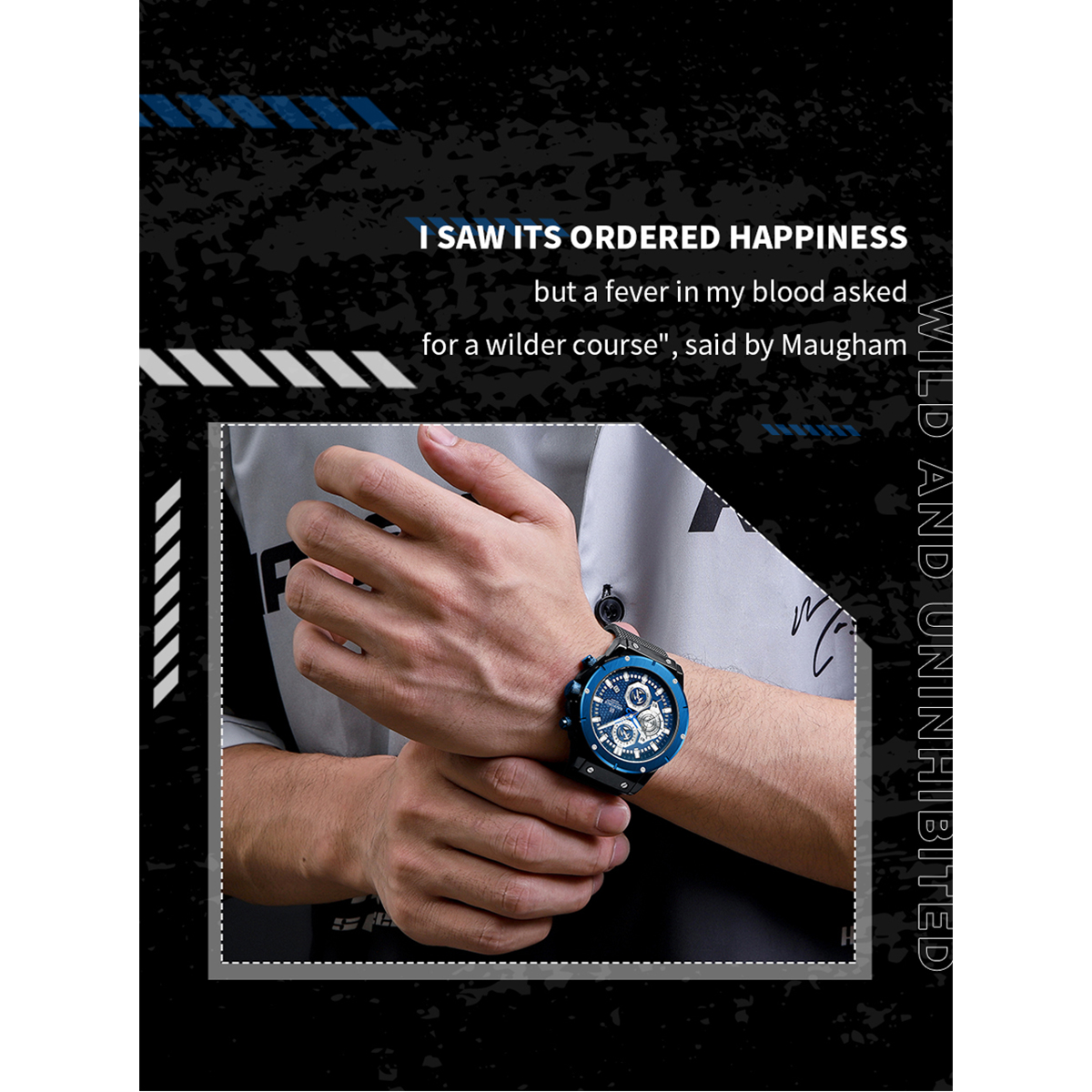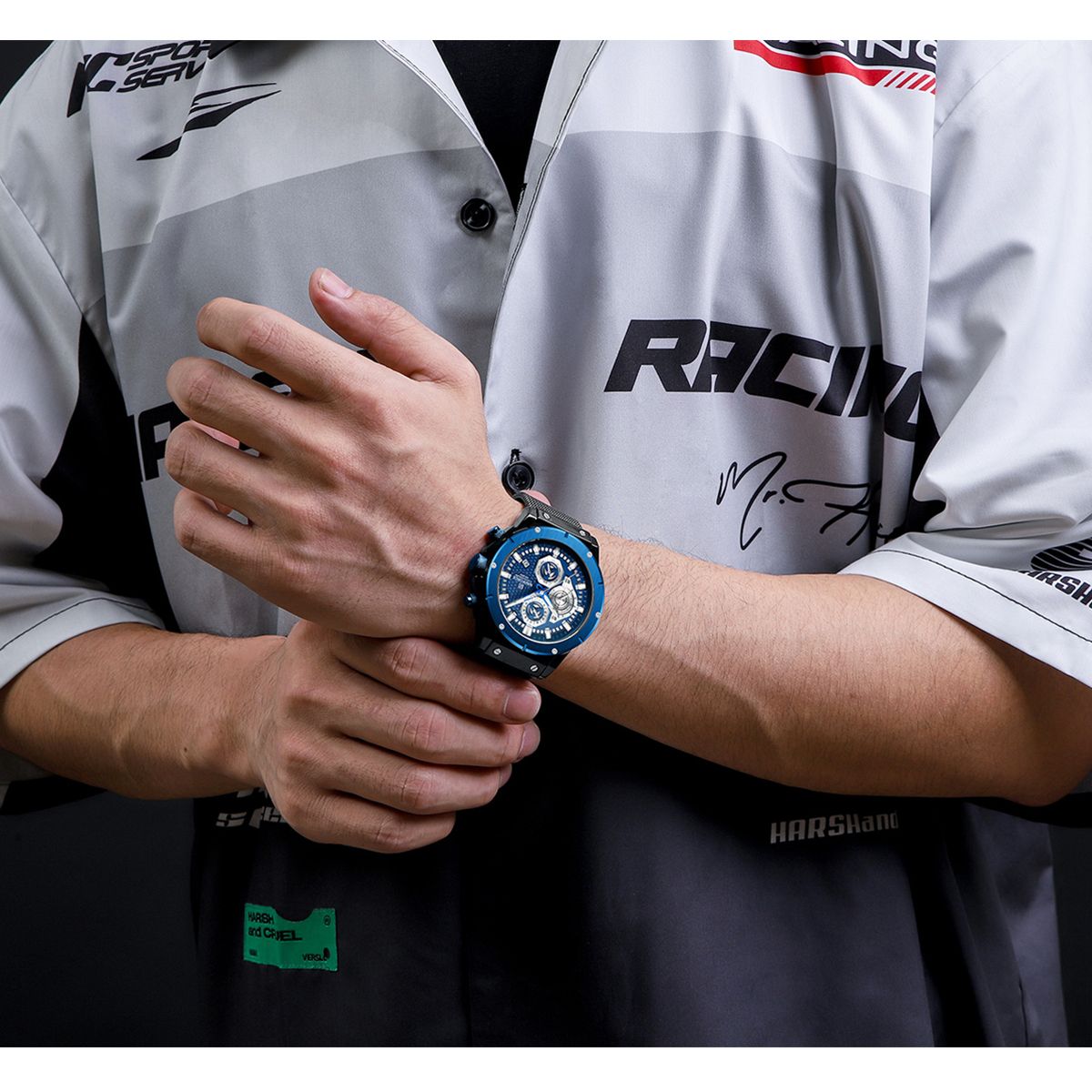 ◉ NOVEL RACING STYLE DIAL:With a caliper-shaped and two propeller-shaped windows,the three subdials of dynamic racing style bring you an unequaled racing experience