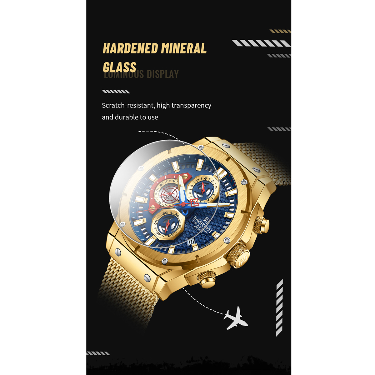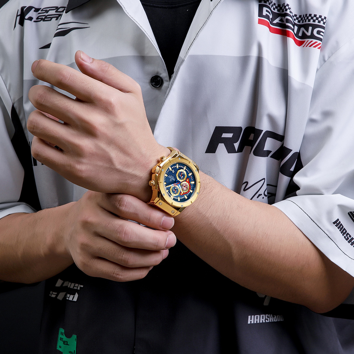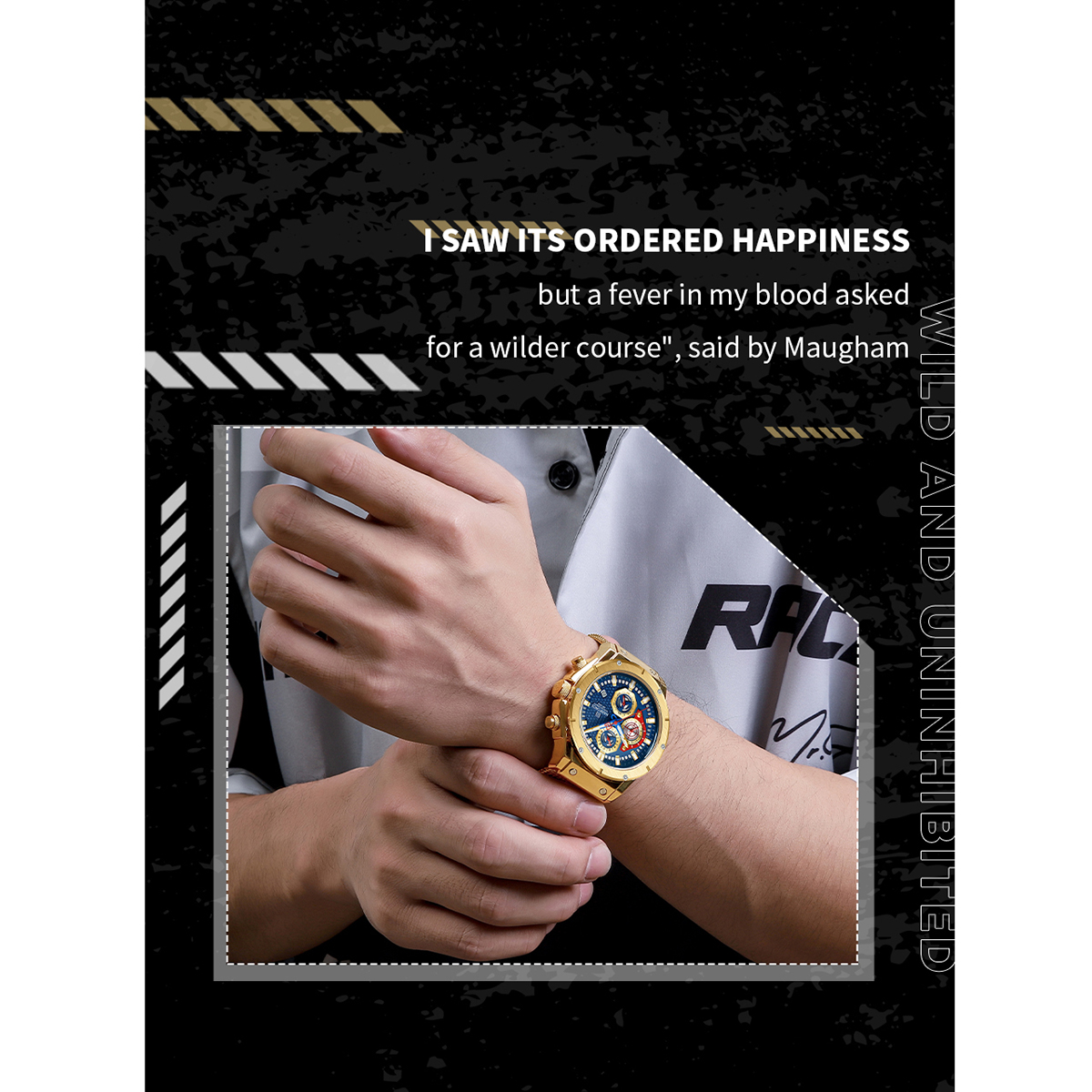 ◉ NOVEL RACING STYLE DIAL:With a caliper-shaped and two propeller-shaped windows,the three subdials of dynamic racing style bring you an unequaled racing experience