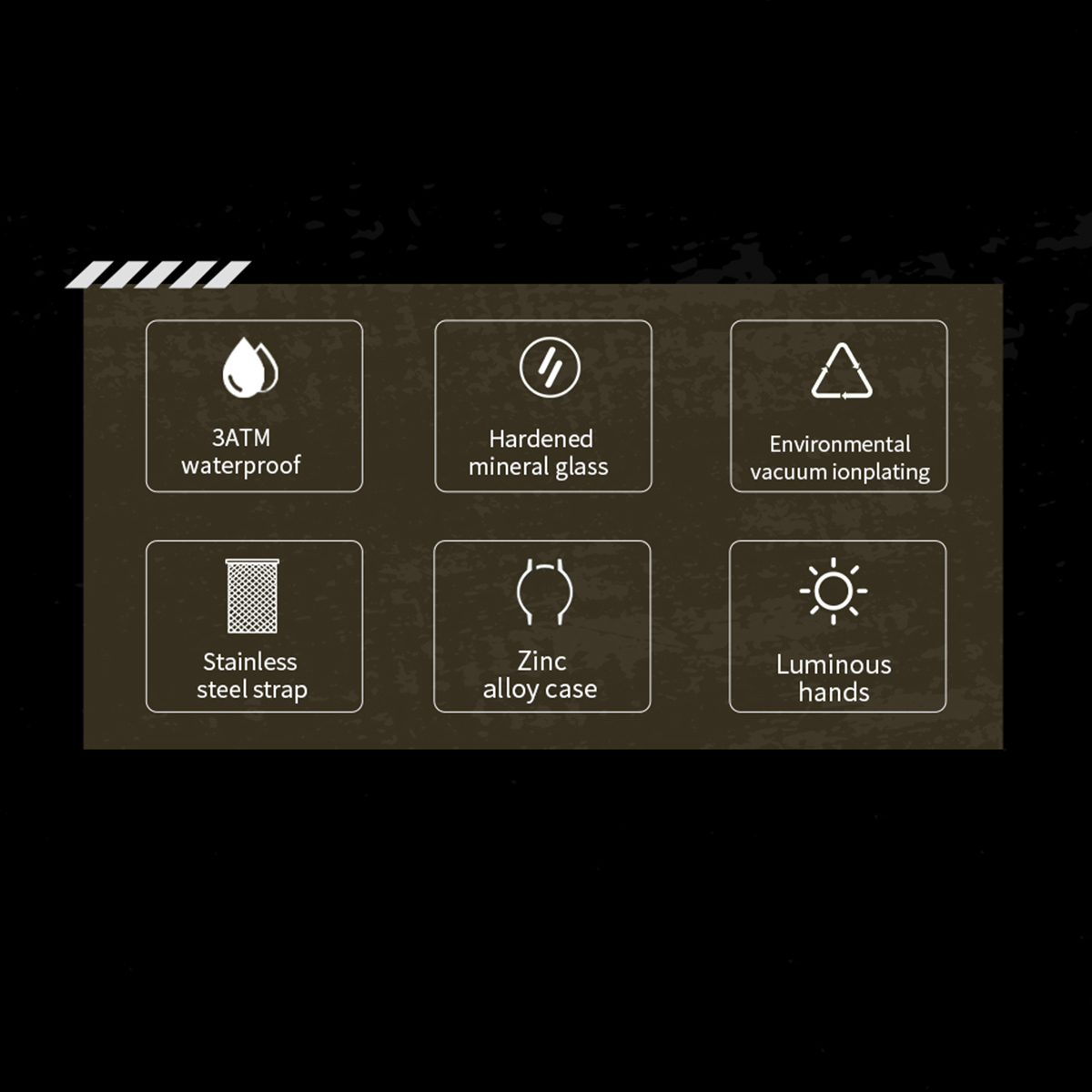 ◉ 3ATM Waterproof Prevent the rain splashing and hand washing, etc. from causing water enter the watches in daily life.