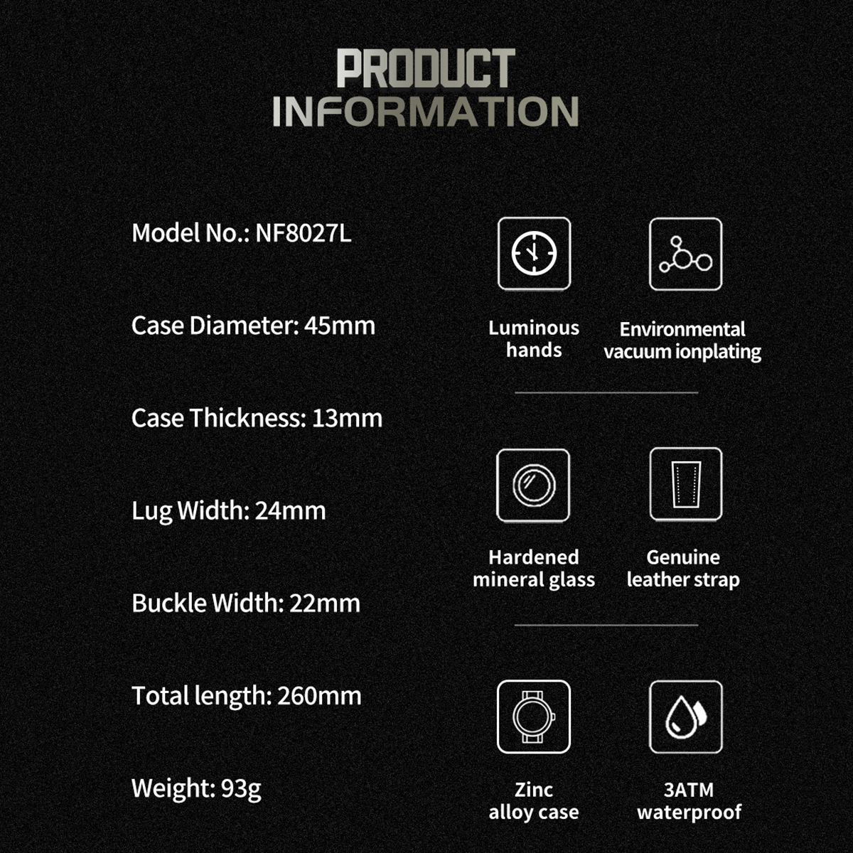 ◉ DYNAMIC CHRONOGRAPH SUBDIALS:Inspiring from aircraft propellers, the 3 small dials provide precise timing. Start the turbine to power your wrist, and give you a hand in soaring the sky.