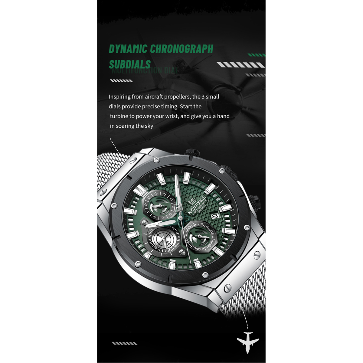 ◉ NOVEL RACING STYLE DIAL:With a caliper-shaped and two propeller-shaped windows,the three subdials of dynamic racing style bring you an unequaled racing experience