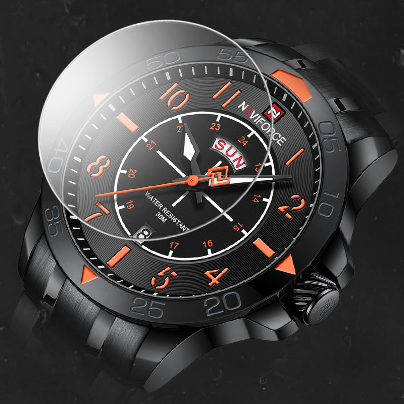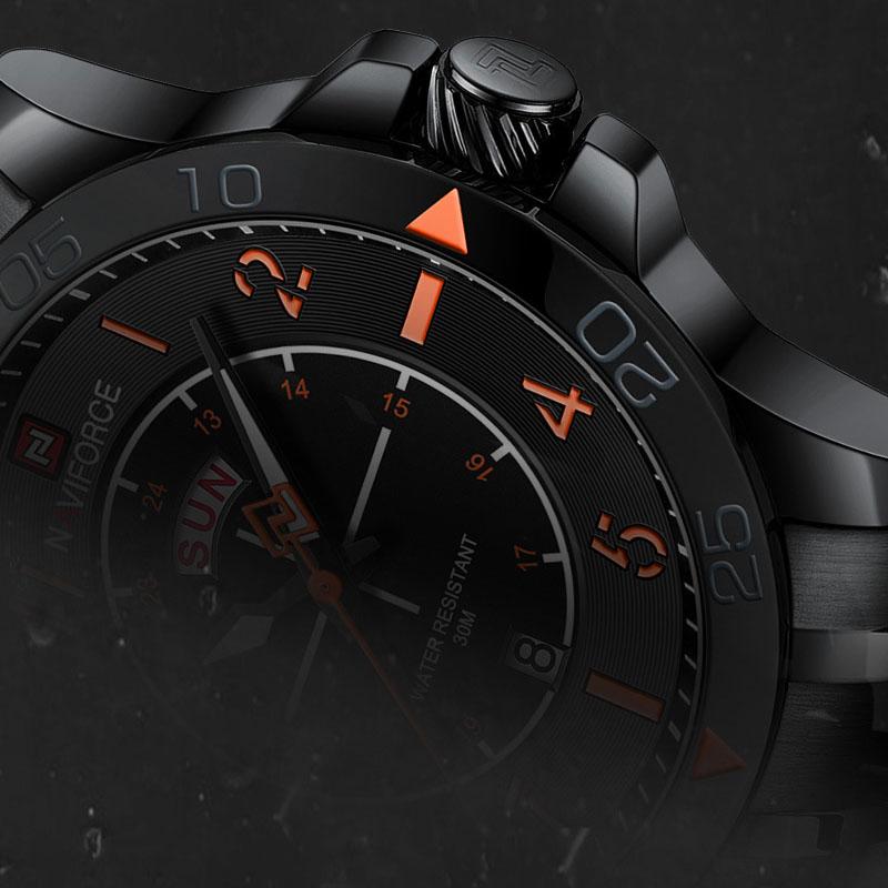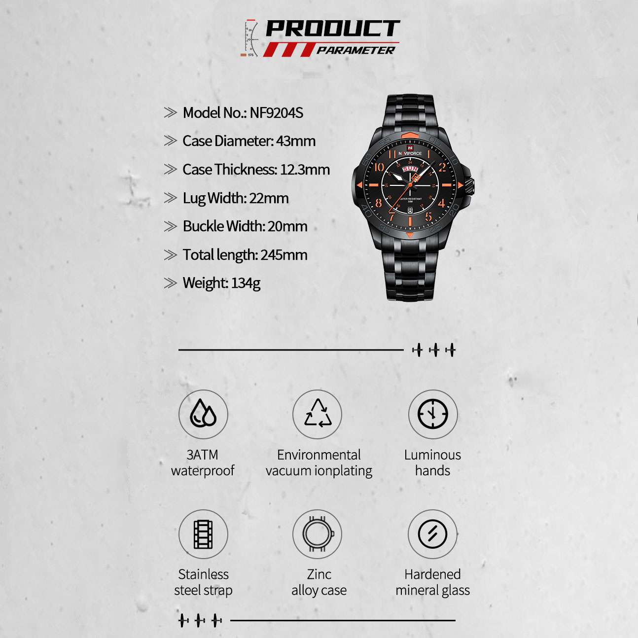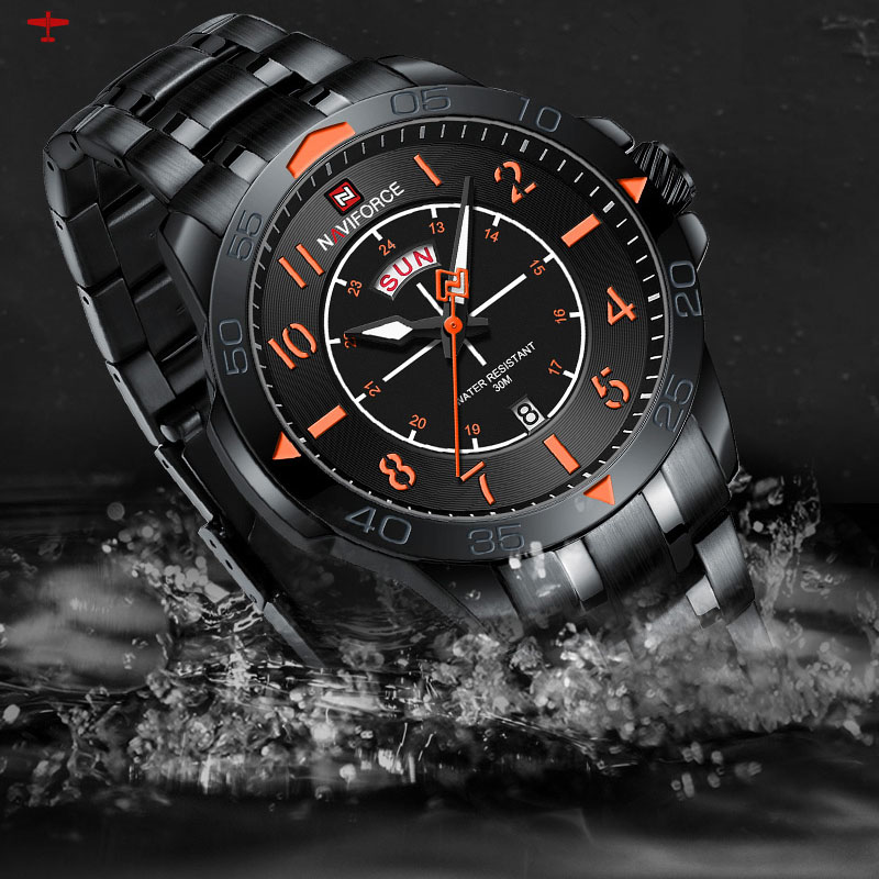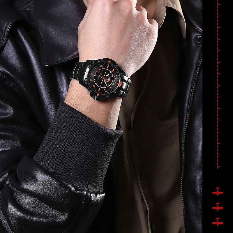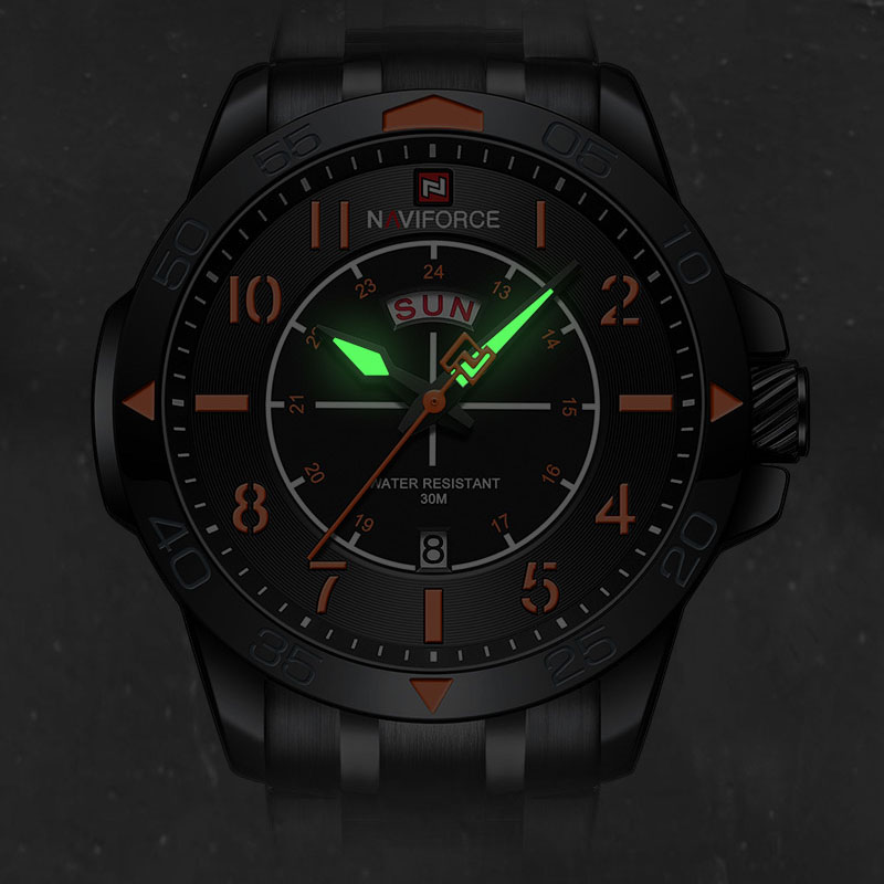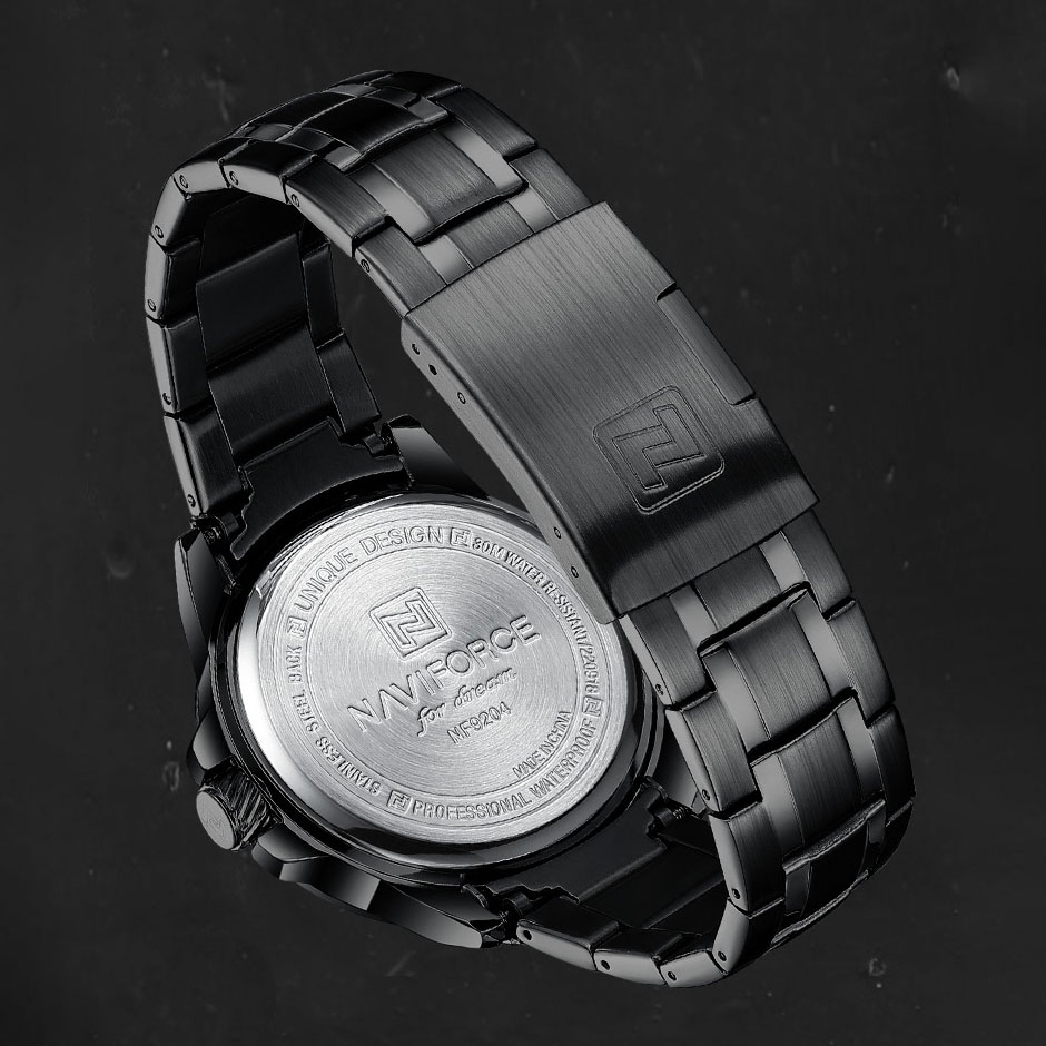NAVIFORCE NF9204 Black Stainless Steel Analog Watch For Men - Orange & Black