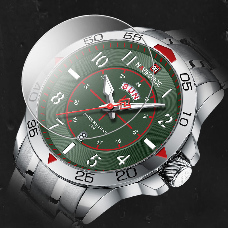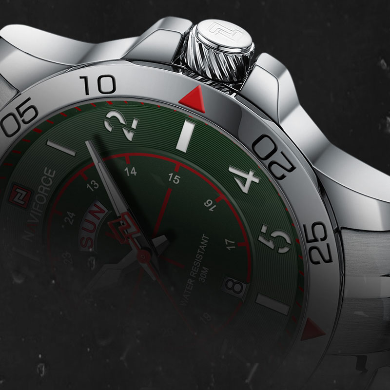 ◉ The dial incorporates elements of fighter sights,Paired with an horizontal crosshair, recreating a classic