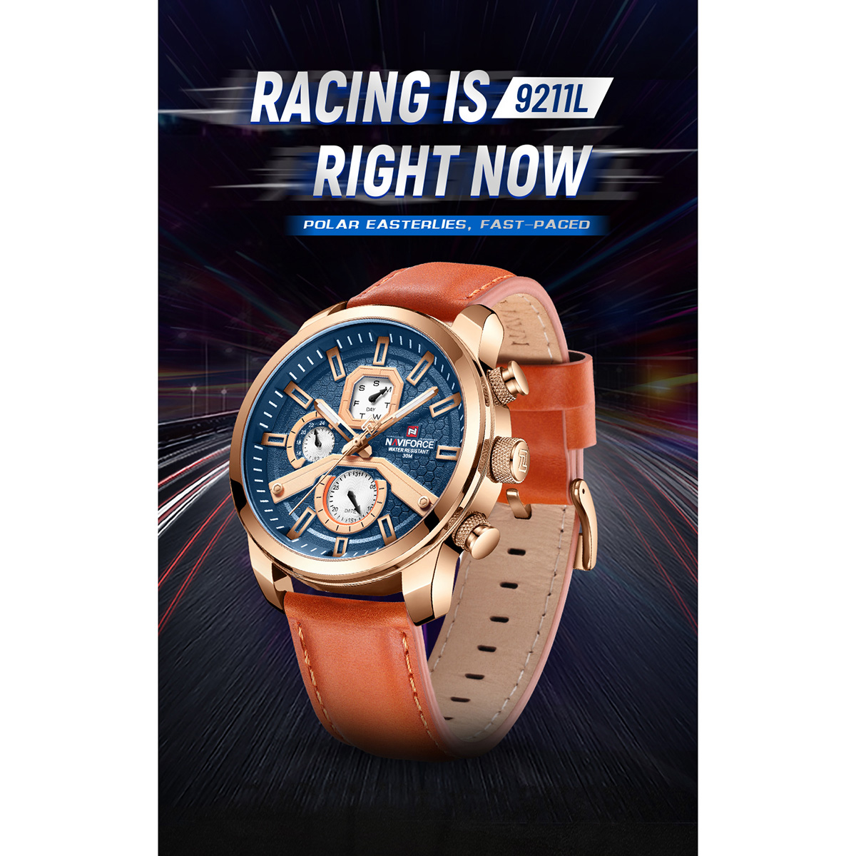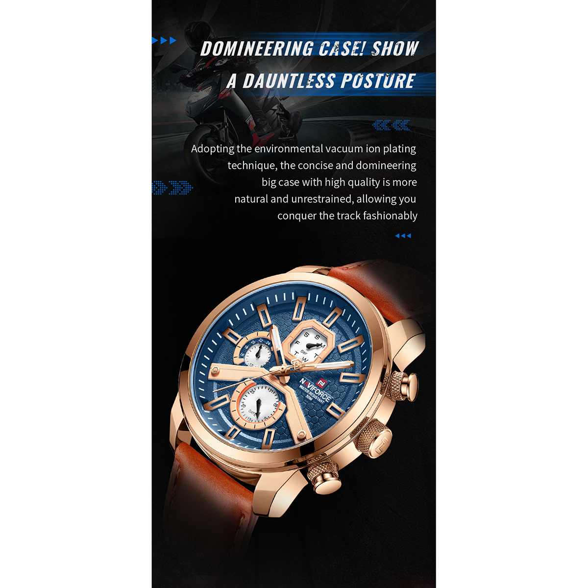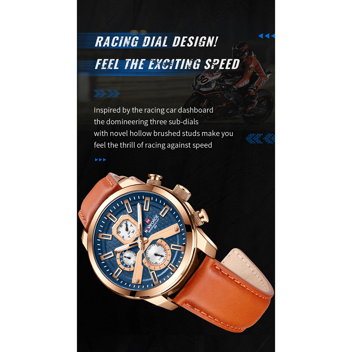 ◉ RACING DIAL DESIGN! FEEL THE EXCITING SPEED Inspired by the racing car dashboard, the domineering three sub-dials with novel hollow brushed studs make you feel the thrill of racing against speed.