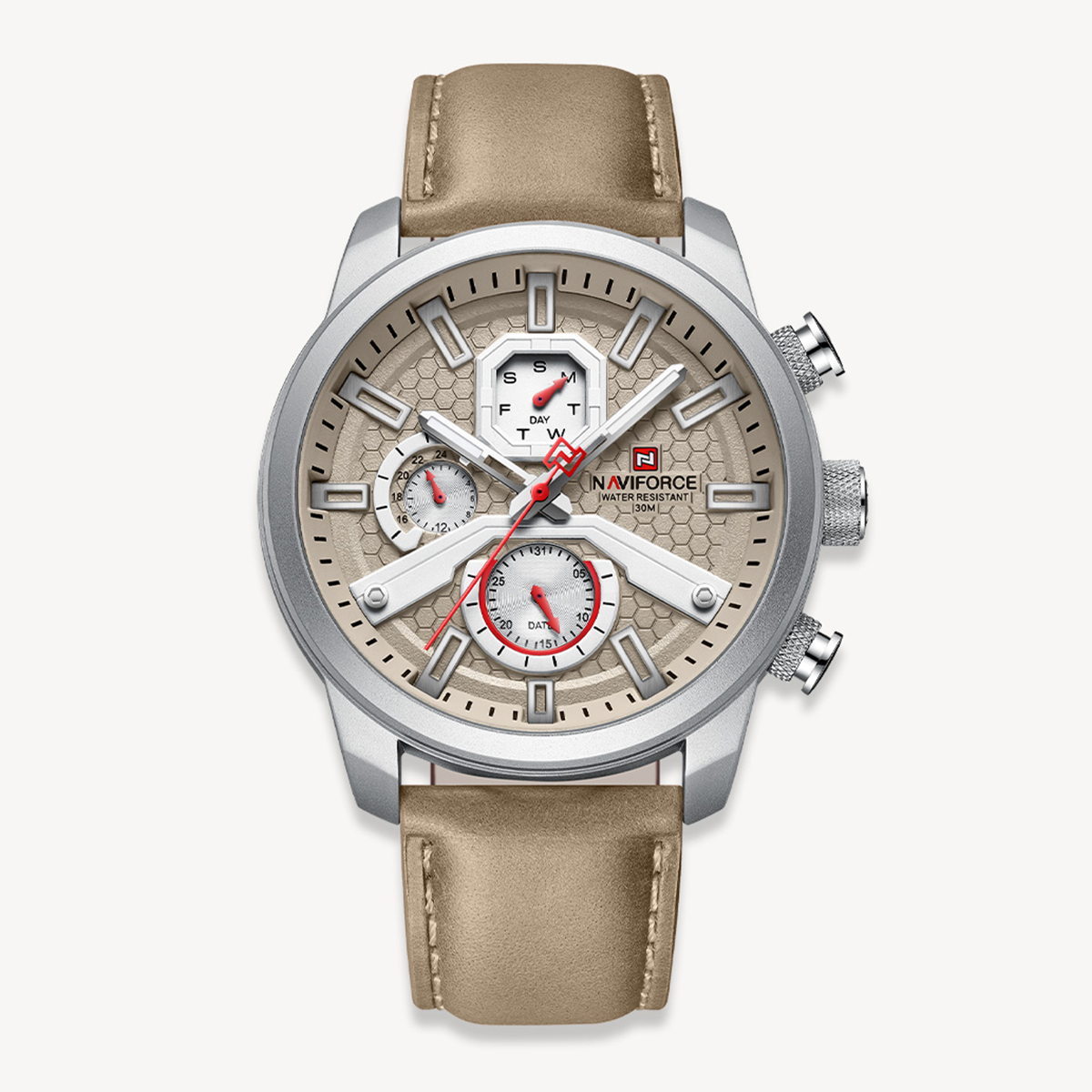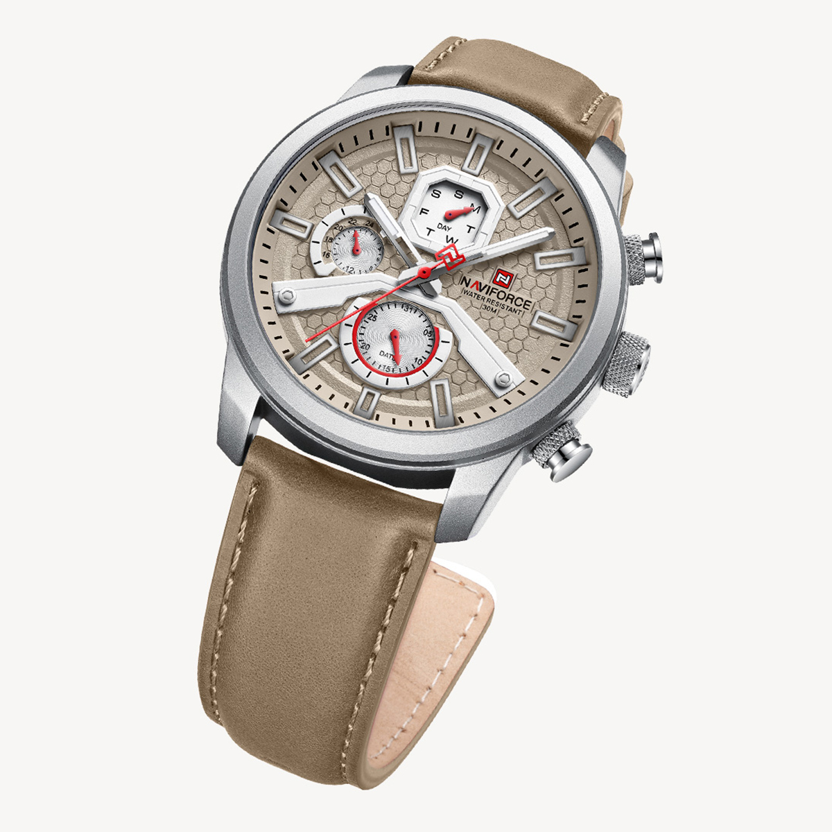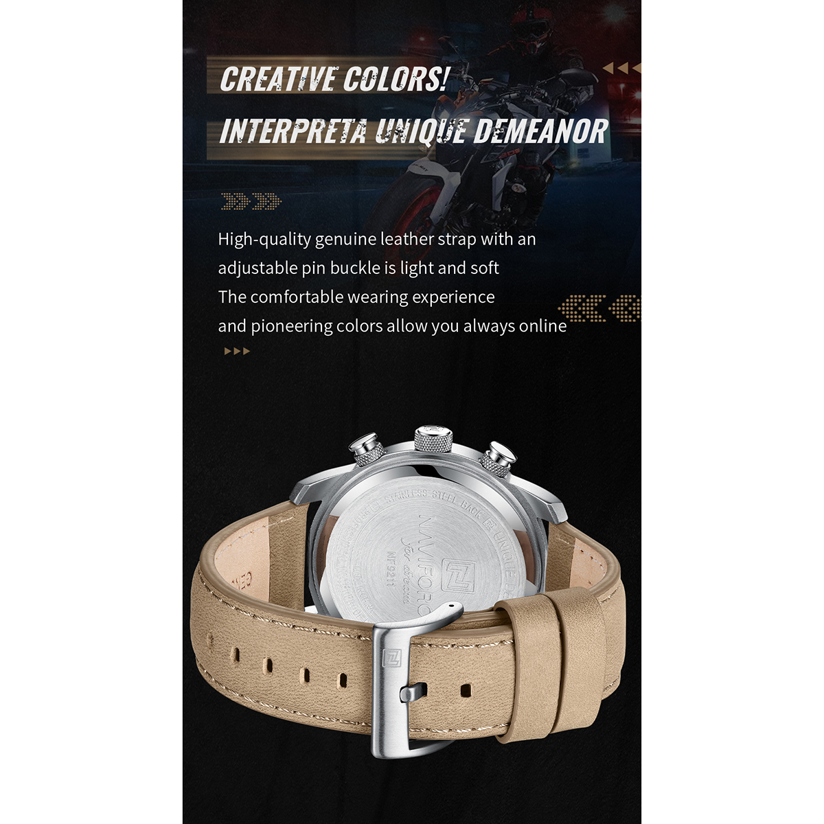 ◉ RACING DIAL DESIGN! FEEL THE EXCITING SPEED Inspired by the racing car dashboard, the domineering three sub-dials with novel hollow brushed studs make you feel the thrill of racing against speed.